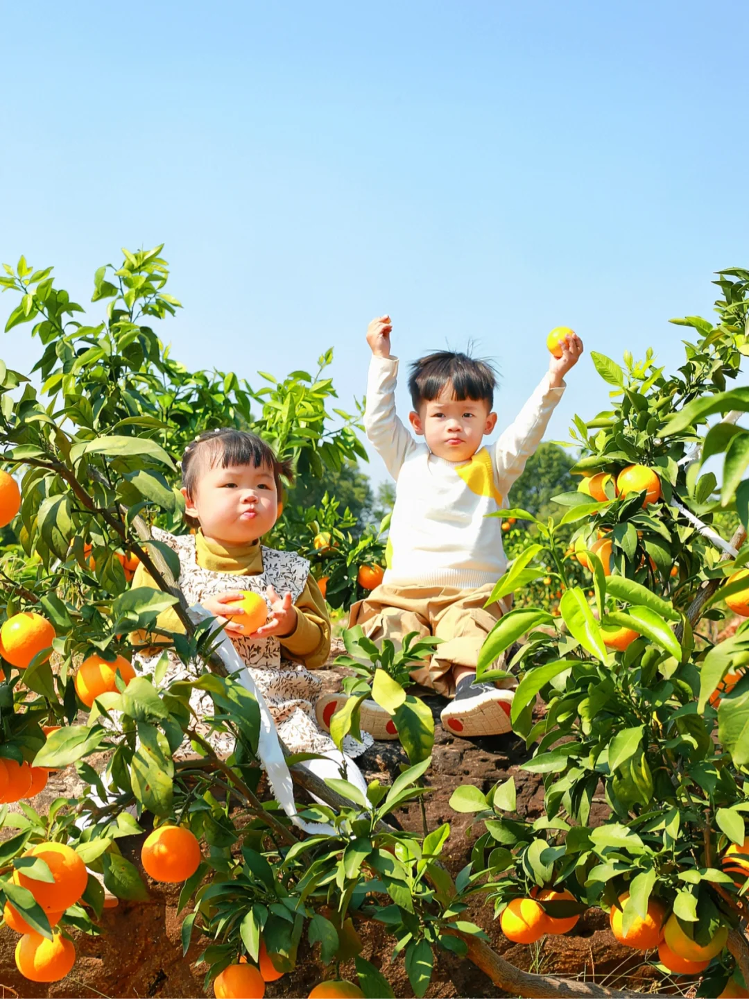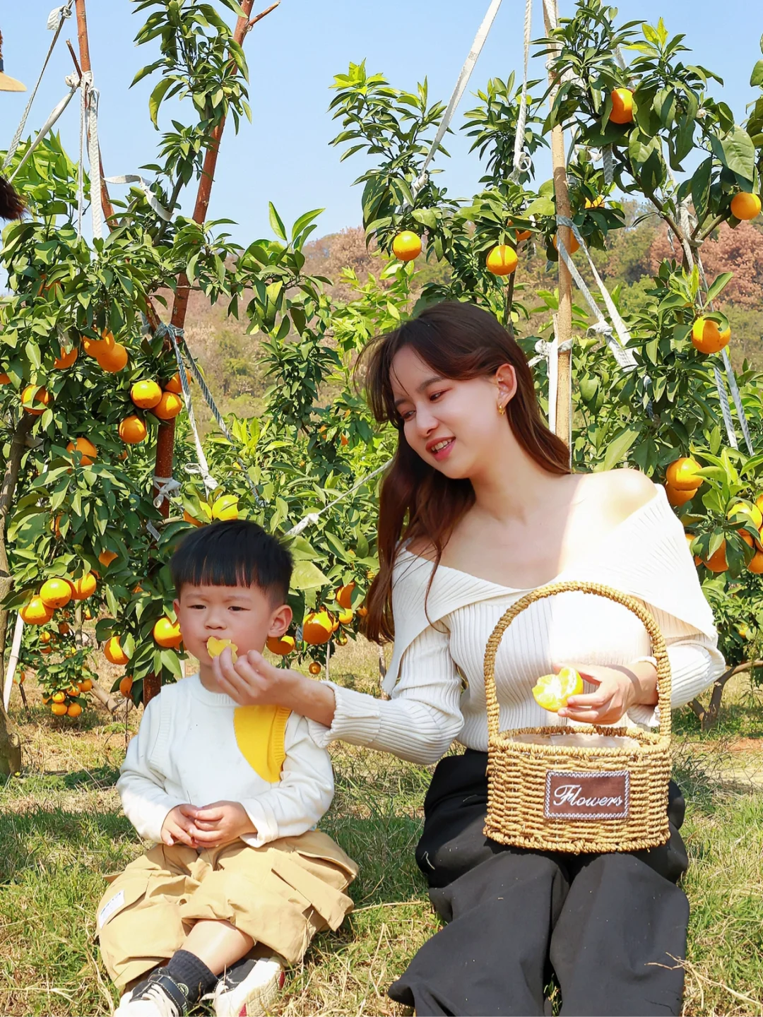 看到水蜜柑成熟啦,就带娃冲了‼️