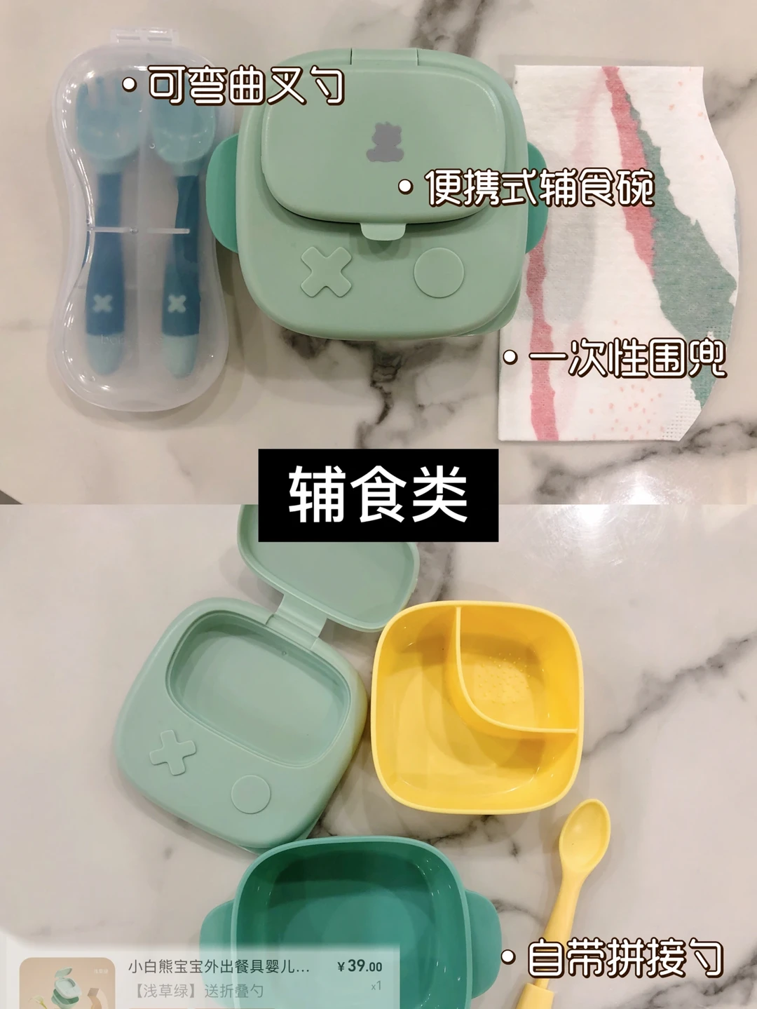 ▫️便携式辅食碗:自带小勺子👍里面有两层,很小巧放在包里不占地方