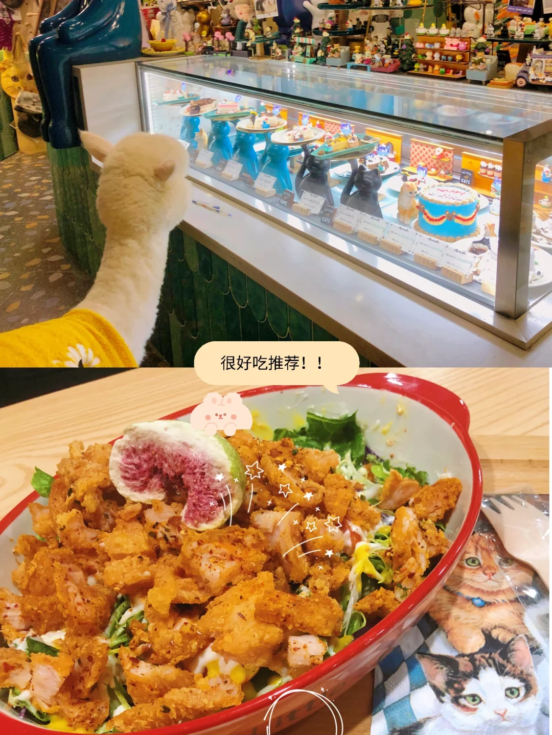 注意⚠️:没有门票费用,但有最低消费28/人,两个人可以点一份鸡排沙拉+撸猫果酱就可以拥有一整天的快乐时光