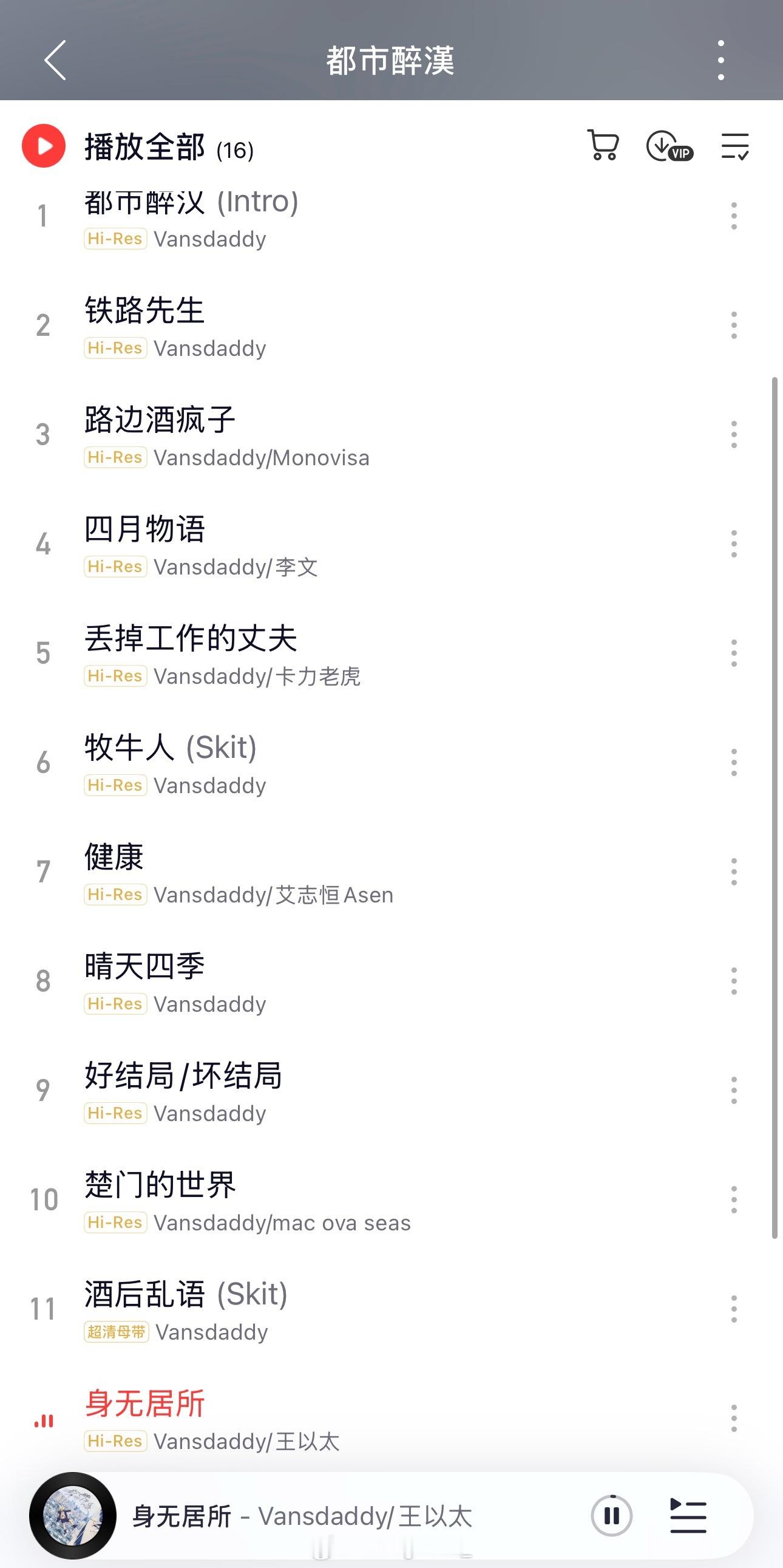 来了🔥VansDaddy新专辑《都市醉汉》发布!你最喜欢哪首歌?