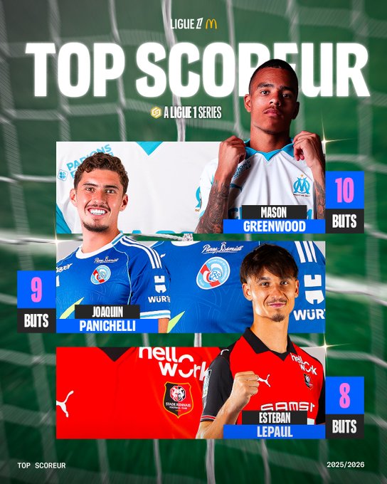 此役过后,本赛季格林伍德在法甲13轮比赛中已打入10球,超越帕尼切利(9球)目前升至法甲射手榜第1。