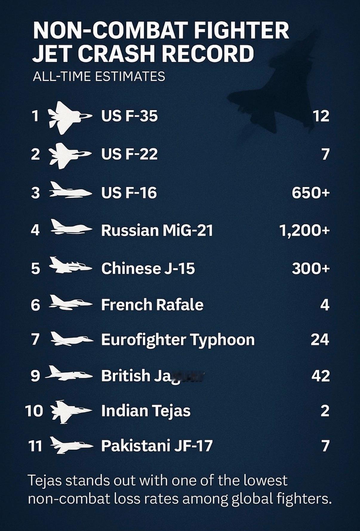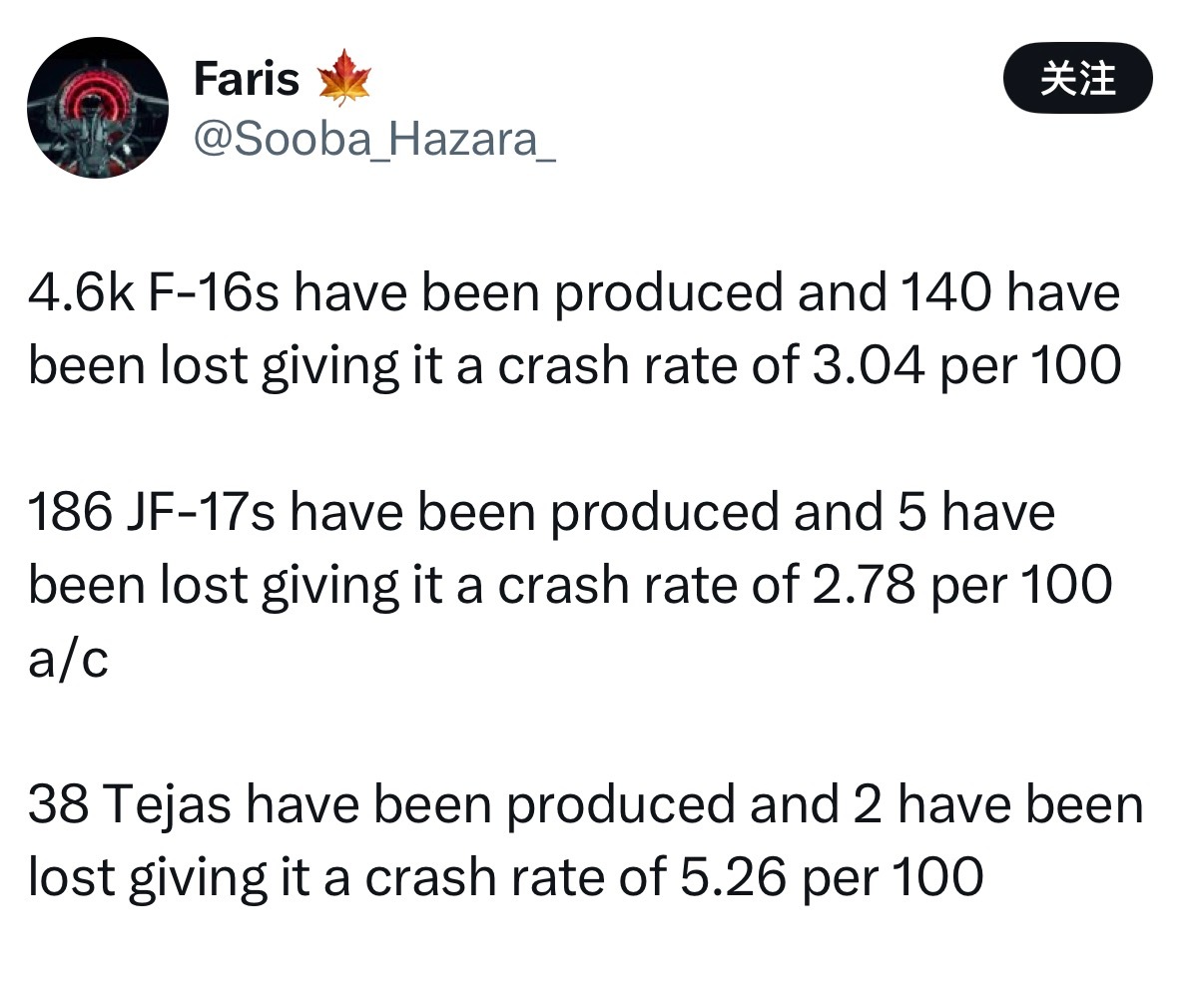 诡辩果然是巴拉特天性,把Jai Hind写在简介里的印度网民顶着啪啪打脸又开始发动恒河赢学在国际航展上当着全球的面摔成渣之后,居然可以反过来吹Tejas是世界上事故至少的战斗机,印度又赢了!结果网友们根本不买账,你Tejas菜造出来多少架也好意思跟别的飞机比?稍微一算就知道Tejas的事故率比其他飞机高得多