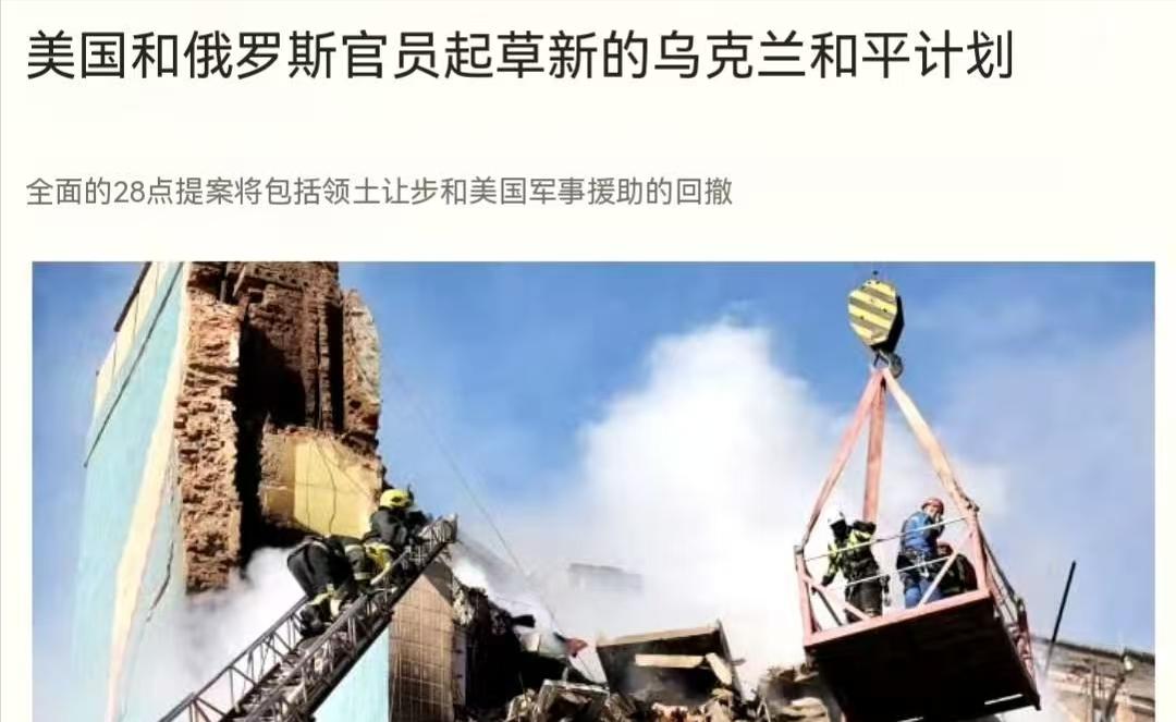 不出预料!乌克兰还是果断拒绝:特朗普的新和平方案了 乌克兰总统办公室一名匿名顾问在基辅的临时办公点向媒体透露,这份由美方主导的协议草案触及了太多“不可退让的底线”,除非进行根本性修改,否则“连摆上谈判桌的资格都没有”。 当地时间11月20日,英国《金融时报》率先披露这一消息时,基辅的天空正飘着细雨,顾问办公桌上的咖啡早已凉透,文件上“最高机密”的印章却依旧醒目。 这样的条款,真的是和平的橄榄枝,还是变相的城下之盟? 综合多家外媒梳理,方案核心内容被拆解为五大部分:首条便要求基辅从顿巴斯地区全面撤军,同时将现有乌军规模缩减一半,最终控制在40万人以内;西方对乌提供的远程打击武器须立即停止输送,那些能打到俄罗斯腹地的导弹、无人机将彻底退出战场。 条款还明确,乌克兰境内不得驻扎任何外国军队,外国军机也被禁止进入其领空;至少未来数年内,乌方须放弃加入北约的申请;最后一条更是直指文化认同——承认俄语为官方语言,并保障俄罗斯东正教在乌的官方地位。 美国《华尔街日报》的报道揭开了更多细节——这与俄总统普京在阿拉斯加峰会上提出的核心诉求高度重合,仿佛是将俄方的清单换了一层包装。 本周早些时候,特朗普已在这份包含28点内容的和平计划上签字,NBC新闻拿到的文件副本显示,计划甚至细化到了武器核查的具体流程,由美总统特使威特科夫、国务卿鲁比奥等高层官员近几周秘密拟定,期间还与俄总统特别代表德米特里耶夫及乌方官员进行过数轮闭门磋商。 布鲁塞尔方面却显得格外疏离。欧盟外交与安全政策高级代表卡拉斯在例行记者会上明确表示,欧盟并未参与该计划的制定,各国外长将于11月20日专门召开会议讨论其可行性。 与此同时,美军陆军部长德里斯科尔的专机正在大西洋上空飞行,按计划,他将率团于本周三抵达基辅,先与泽连斯基及乌军方、议员、军工代表会谈,随后转道与俄方接触。 白宫内部消息源向Politico透露,特朗普当局可能在本周内公布协议草案,乐观预期停火框架协议可在本周获批,月底前敲定最终文本。 截至发稿时,莫斯科克里姆林宫、华盛顿国务院及欧盟对外行动署均未就此发表正式评论,只有基辅街头的抗议横幅在寒风中猎猎作响——上面写着“不放弃一寸土地”。 乌克兰的拒绝并非没有底气。当前前线虽有拉锯,但尚未出现乌军全线崩溃或俄军战略性突破的迹象,此时要求其大幅让步,显然难以服众。 更值得玩味的是美欧媒体的不同调门——美国媒体强调方案是“美俄乌三方磋商的成果”,欧洲同行却集体淡化这一点,仿佛在刻意保持距离。 那些未被披露的条款,是否比已曝光的五条更具争议? 当和平的方案需要一方不断退让来换取,这样的和平,又能持续多久