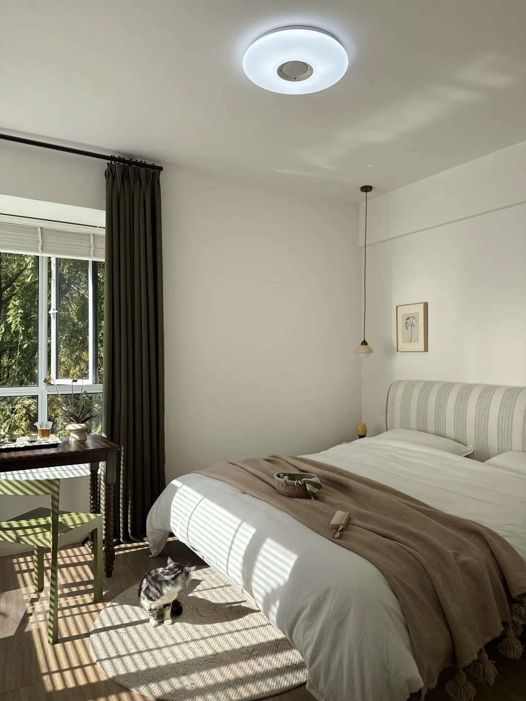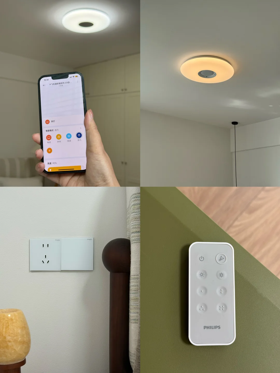 最近我把卧室按照老人的喜好重新布置了一下。换了深色的遮光窗帘,硬一些的床垫,还有轻盈透气的被子。当然,灯光也不能马虎,之前氛围感拉满的纸灯换成了飞利浦安瑞系列照明吸顶灯,这灯光设计,很是贴心,很适合家里有老人的。