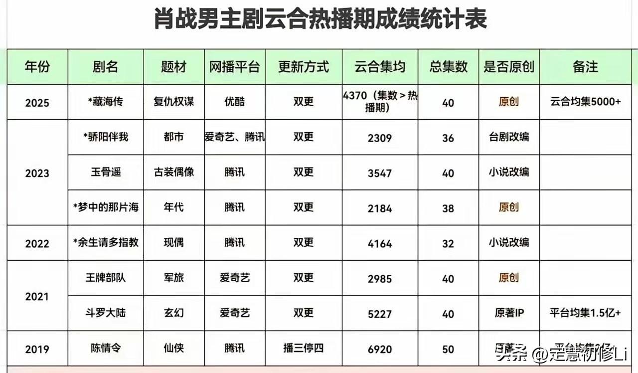 肖战的数据下限都是很多人的天花板,所以看一个演员扛不扛剧,看下限就懂了,有号召力的演员,下限很高,观众真会为了你去看,数据上下跌宕起伏的要么赶上剧情还行,要么赶上大IP,要么就是有老戏骨站台,换个题材和班底就没人看,这就说明演员没观众缘,也没有号召力,这些业内可是门清,要不然那些炒作热度造假数据大导大制作也应该合作不断啊。 为什么只有肖战大导大制作不断呢,说明业内有真数据,脱水数据,肖战有真实力,有真断层热度,有真扛剧能力,有真断层商业价值。 现在影视寒冬,资本家也没多余的钱给水货打水漂玩啊。