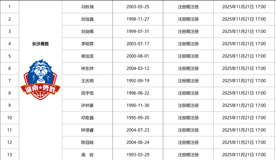 虎扑11月22日讯深蓝体育官方公布新赛季NBL长沙勇胜队注册信息。