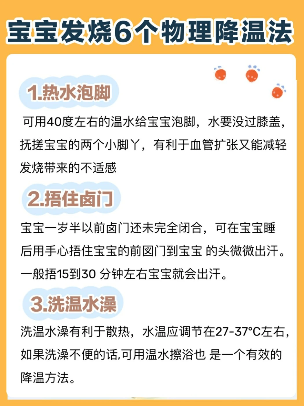 如果宝宝发烧不高于38.5℃,可以用以上办法;如果高于38.5℃,需要降烧药退烧,并及时看医生,若高于40℃,直接急诊,不需要排队。