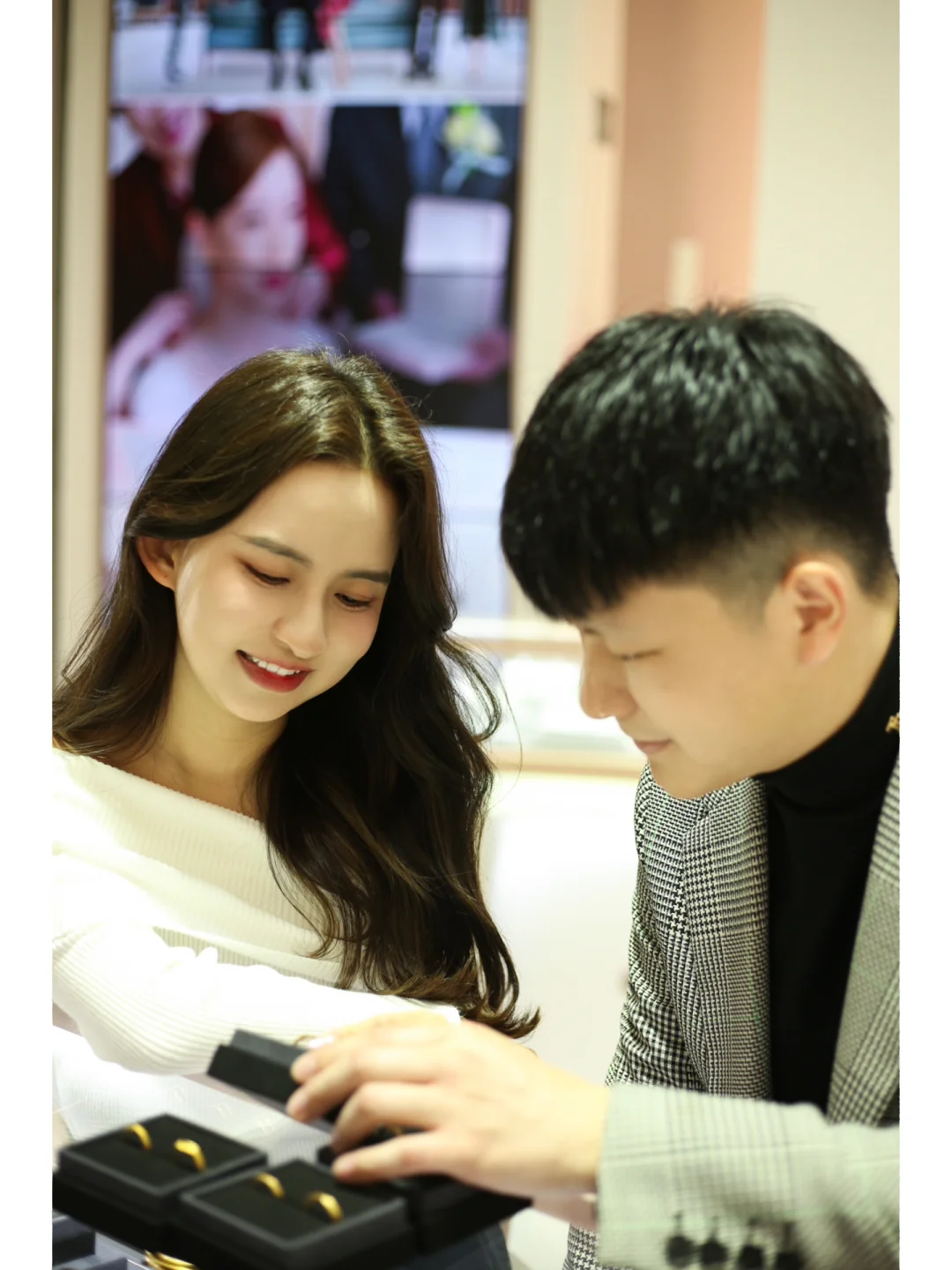金+钻的设计区别于别的黄金对戒更加时尚精致