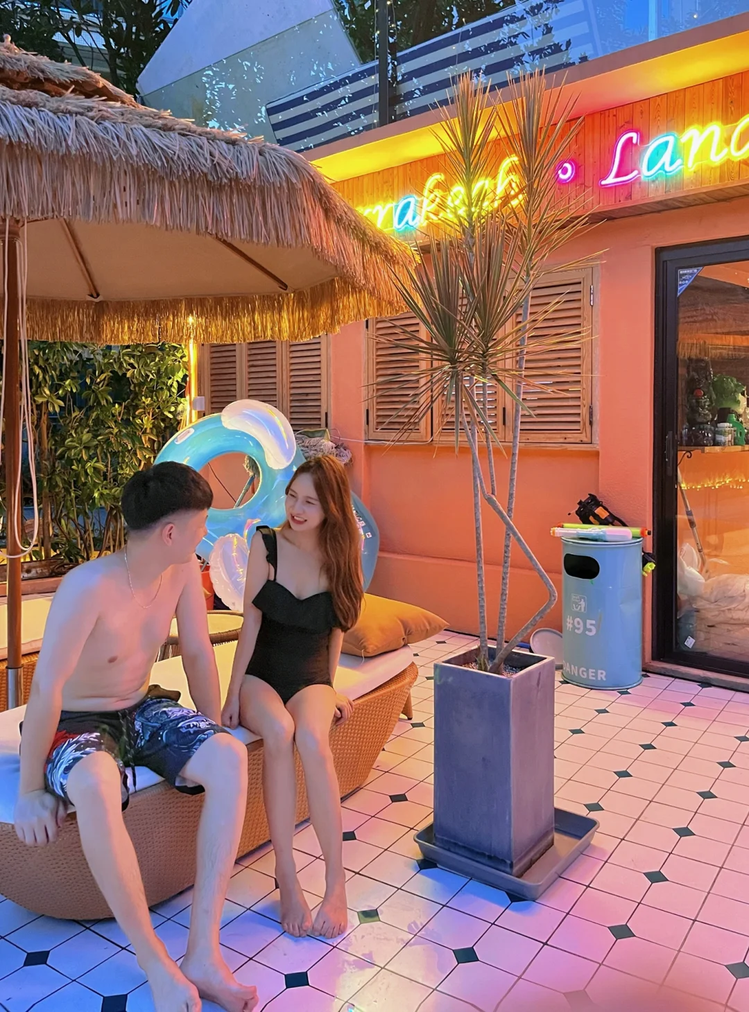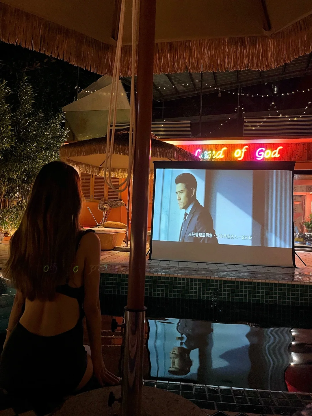 氛围感十足,游游泳再躺沙发上看看露天电影