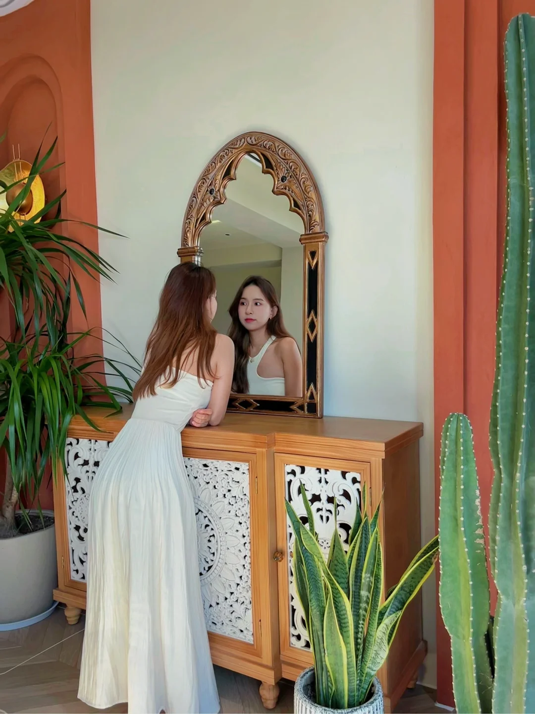 ✅整个色调超级出片,穿浅色的裙子就很好看了,晚上泳池边超舒服!每个房间都有投影仪