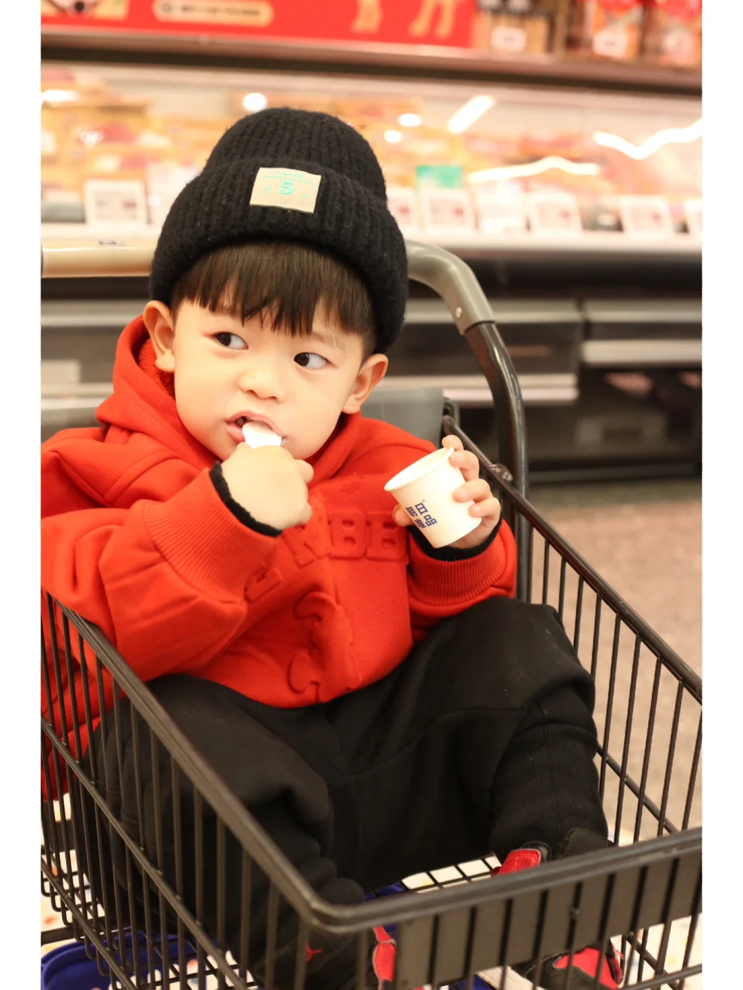 盒马的试吃产品好多,就给小肥羊一一试吃
