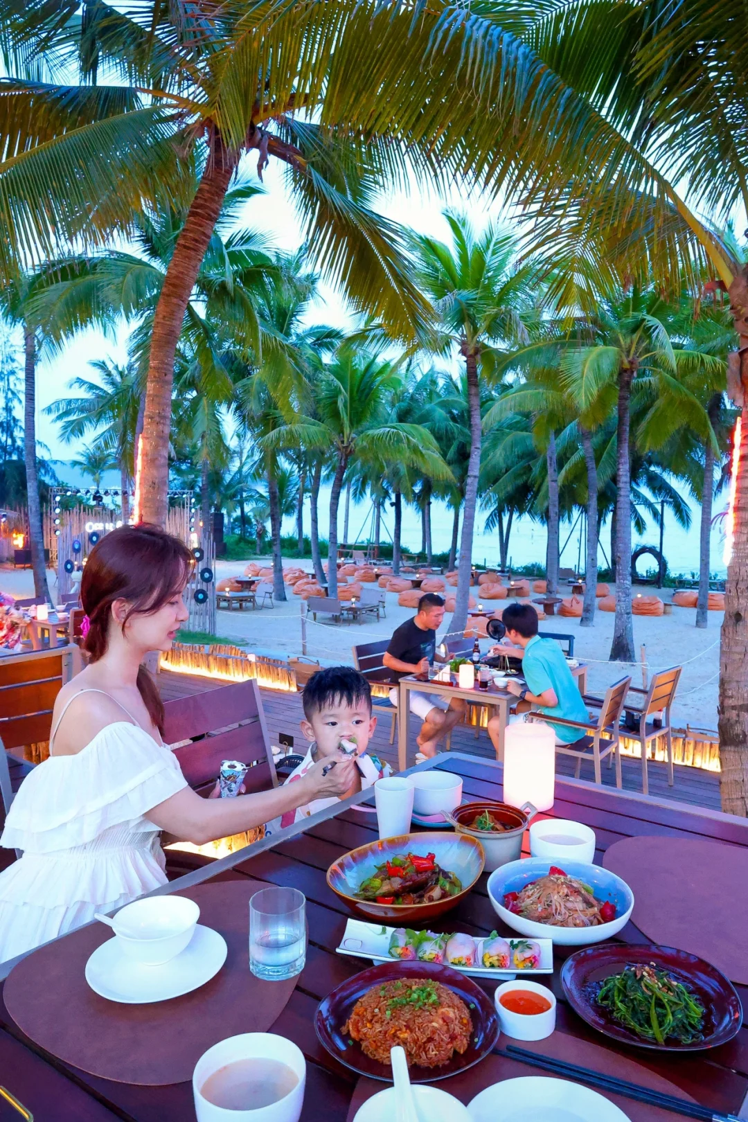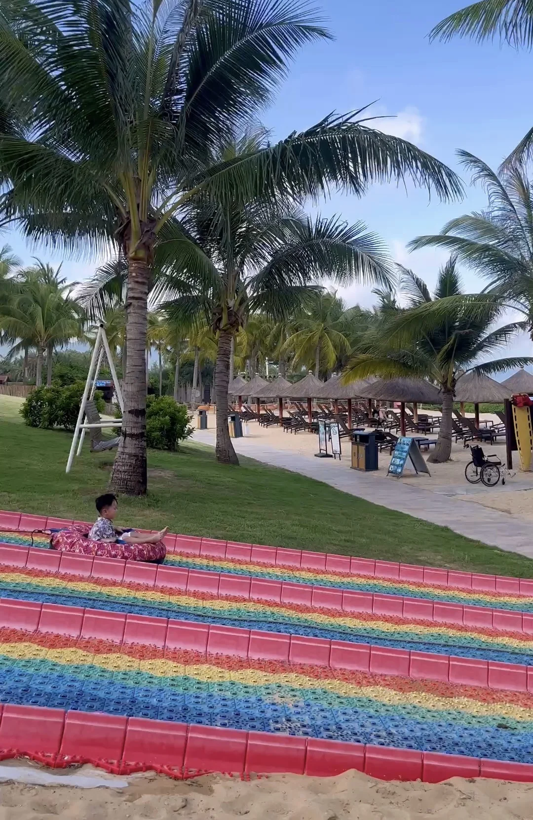 住进三亚超有氛围感的地方 爱惨了他的沙滩🏖️像极了巴厘岛 即使去过了很多海岛 但这里依然满足了我在国内对度假的所有想象 依山傍海🌊沙滩很美 日落🌄时分在沙滩看海吃晚餐,度假指数拉🈵️ 虽然不是亲子酒店,但亲子设施一个不少 室内、室外的游乐场都很棒 还能托管,带娃很友好了🍄 - 🛏️关于住: ✔️这次入住的山海景大床房,泡澡🛁都能看山看海,欢迎水果🍉超级丰富的‼️床可以加装围栏,晚上开夜床这种小细节真的很贴心💙 🏖️关于吃: ✔️早餐🥣品种丰富,控制人流量,体验感很好 ✔️在悦海吧连吃两晚,有椰子鸡🥥火锅,中餐、泰式料理,选择很多,味道好,主要是在沙滩边用餐氛围十足,晚上的bar还有驻唱歌手,吹海风听听歌🎶 🏄关于玩: ✔️室内游乐场,有海洋球、蹦床、积木等 ✔️室外是沙滩游乐场,有卡丁车、小火车,彩虹滑道无限玩,有工作人员帮忙拉上去,小肥羊也就玩了十几次吧😂,还有萌宠,羊驼🦙、小香猪、孔雀🦚等, ✔️私人沙滩很美,不同于别的沙滩,这里还有礁石,很有感觉,沙滩上各式各样的贝壳🐚很多,我们捡了十几种不重样的贝壳‼️ -