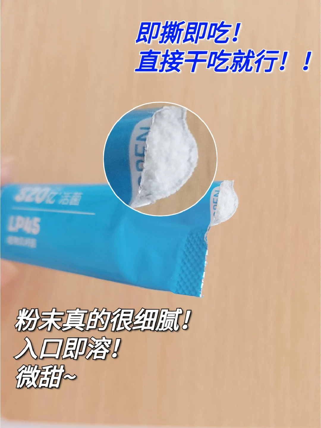 里面的三大菌株(✅植物乳杆菌LP45、✅鼠李糖乳杆菌L519、✅嗜热链球菌s131)和益生元强强联手。每天1-2条,撕开直接就可以吃,入口即溶,超级方便‼️我平时放在包里随时携带,一般饭前半小时直接吃一条~