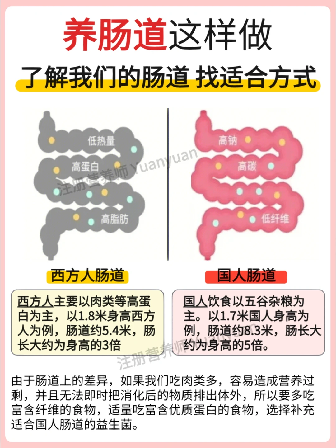 🔺 养肠道“饮食”:因为中西方肠道有差异,适合国人的养肠道饮食和国外不一样。
