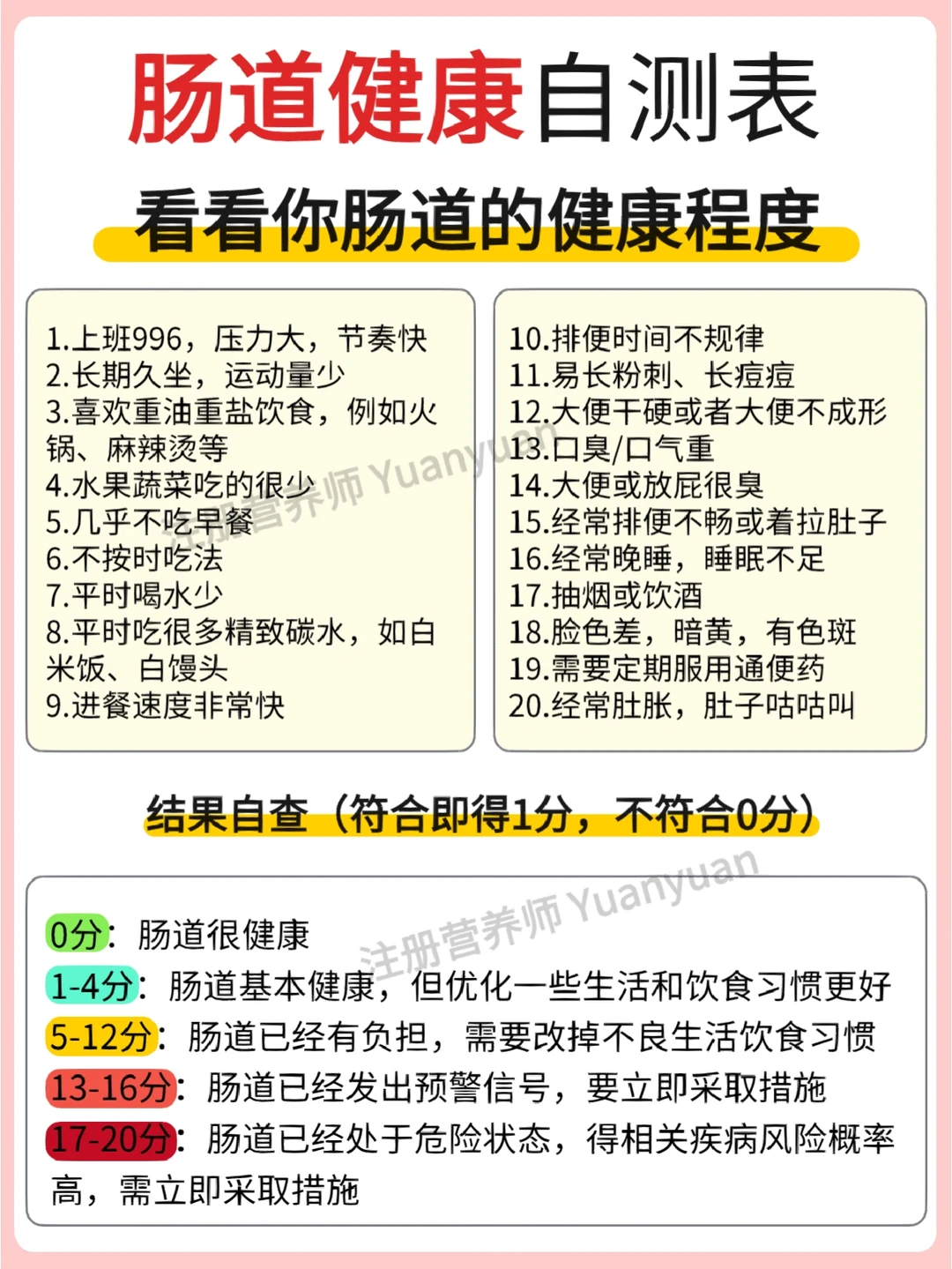 肠道是人体重要的消化器官‼️吸收营养供给全身,所以肠道健康是人体健康的关键,安排了肠道健康自测表,快去图2测测你的肠道健康情况。