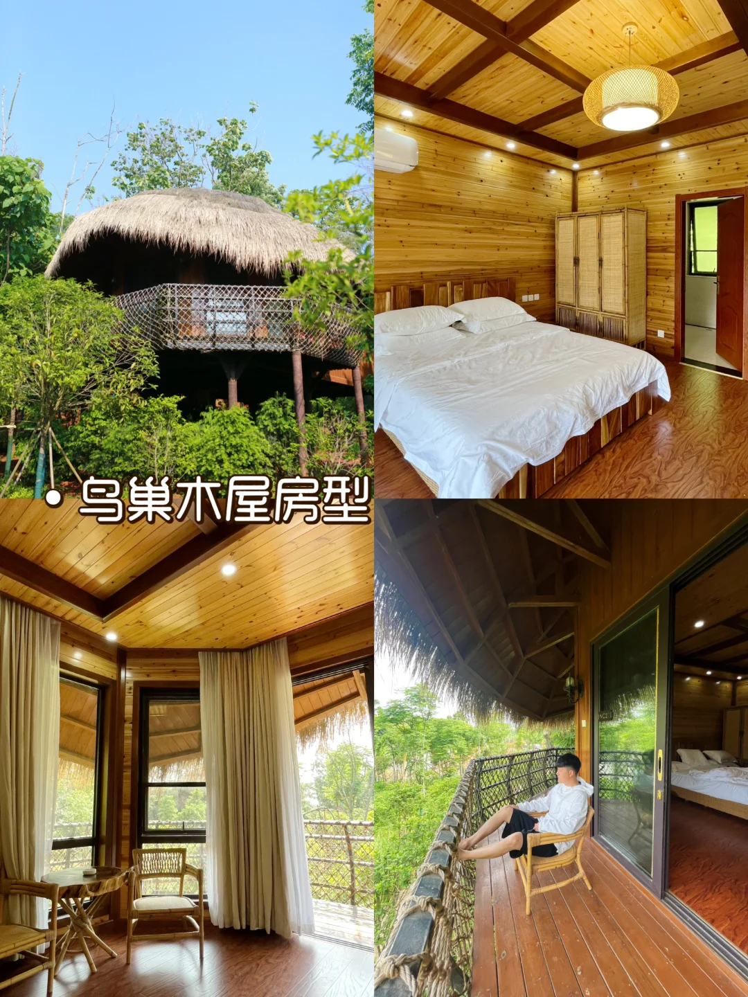 如果情侣出行就入住这个鸟巢木屋,有种巴厘岛的感觉,每个木屋隔得比较远,私密性不错,我们入住的是大鸟巢,会有个阳台+小厨房,带娃也可以床比较大,如果人多可以选公寓,两室一厅,适合带父母一起🌴