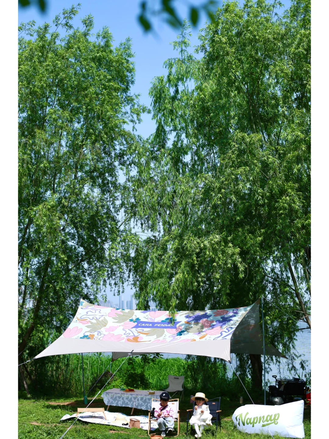 这次出游选购了卡拉狐户外的天幕和野餐垫!阳光下抓眼又出片,营造出浪漫💕温馨的气息