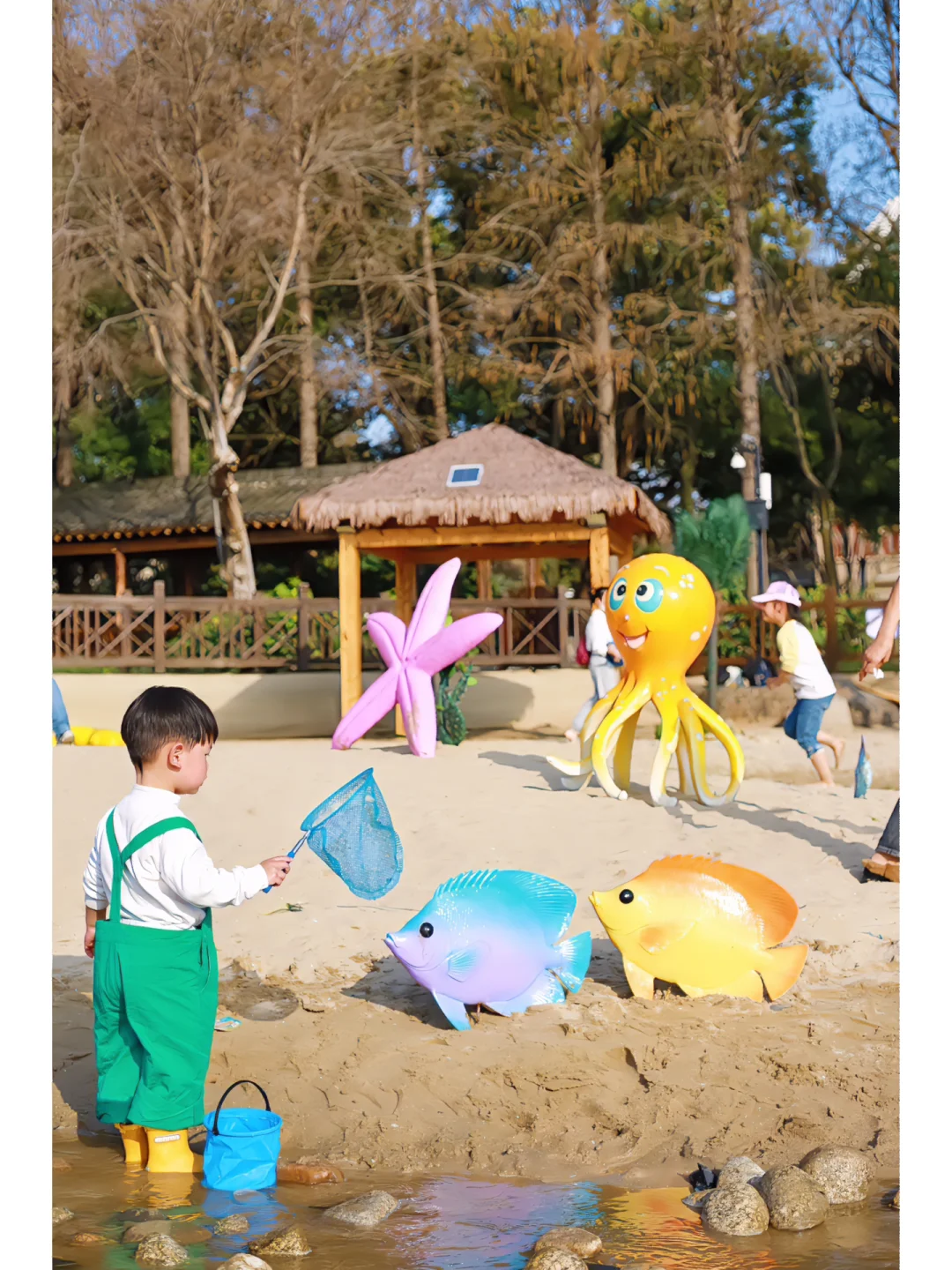 3️⃣小一点的宝宝记得带上雨鞋,会硌脚,但光脚玩😃,有水龙头可洗脚