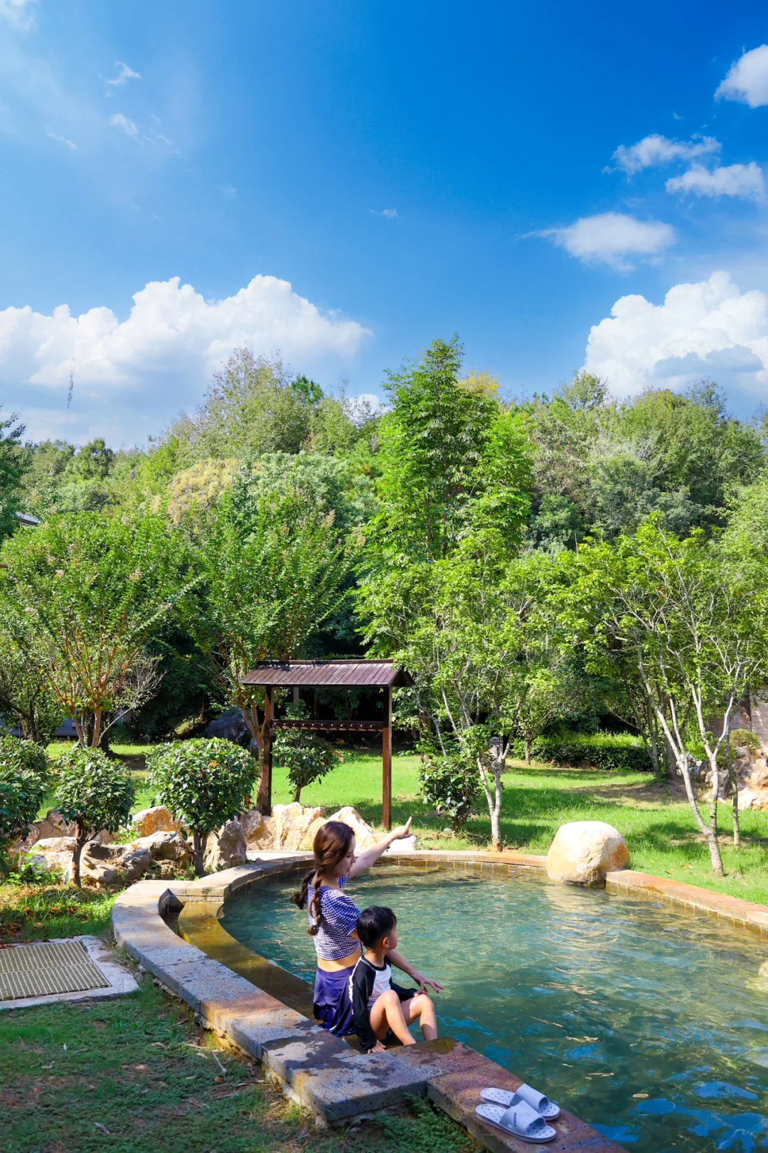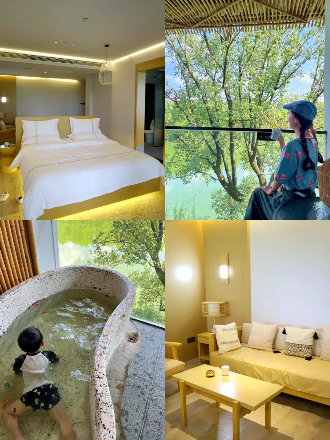 去年走过武汉好玩地100站‼️今年继续 第176站:森林里的山湖温泉 十一的天气超凉快,泡个温泉♨️不要太舒服了 距离武汉1h,人均100+的温泉酒店性价比很高 室外室内的温泉都有,很适合亲子出行 室外的温泉藏在森林里,池子很多 依山傍水的仿佛置身仙境 - 📍定位:山湖温泉度假酒店 - 🏡关于住: 我们住的私汤房♨️窗外风景很好,小肥羊在阳台就可以玩水,房间很大,除了私汤房还有别墅区、标间 🥏关于玩: ✅各式各样的温泉池,鱼疗池、红酒池、盐🧂浴 ✅除了泡汤还能在湖边露营,天气凉快的时候来个围炉煮茶,小肥羊玩了飞盘🥏、高尔夫⛳️光在草坪上玩他就很开心了 ✅湖边有快艇🛥️、游艇,去湖中心看看风景度个假 - ⚠️注意事项: 1️⃣泡温泉的每个柜子里都有大人的拖鞋,小朋友的别忘了带‼️ 2️⃣酒店离市区很近,出去用餐也很方便 -