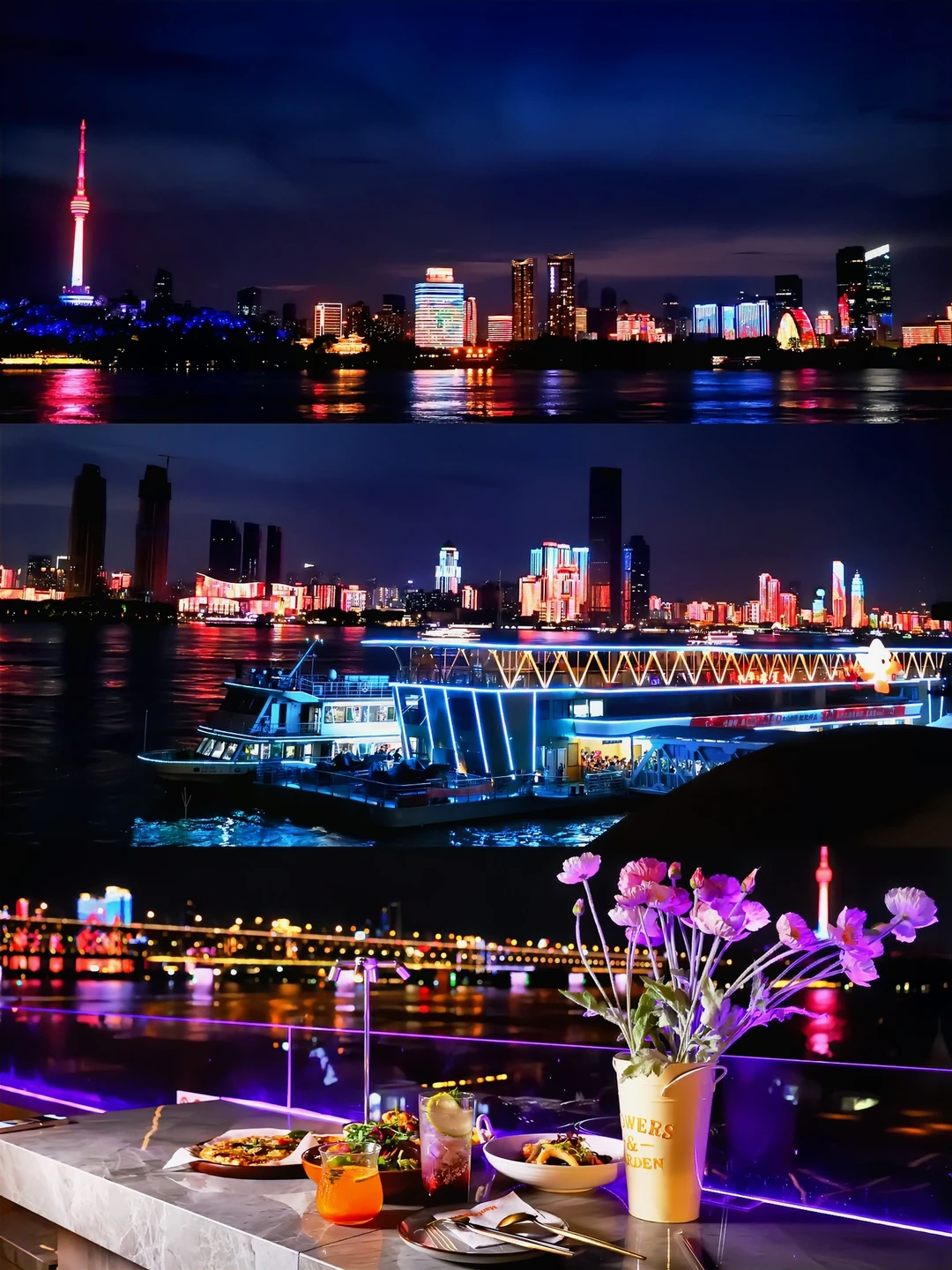 去年走过武汉好玩地200站‼️今年继续 第246站:属于夏天的粉色晚霞💕 武汉最近的晚霞落日真的很治愈🌆 但大部分地方人都很多! 终于找到了一个人少景美的观赏地 不仅可以看到世纪落日,还能看武汉的绝美夜景🌃 可以从江汉关码头坐轮渡到中华路码头⛵️ 中华路码头楼上,现在知道的人还不多🌆 二楼的开放式露台可以独享一整个江景观赏地‼️ —————————