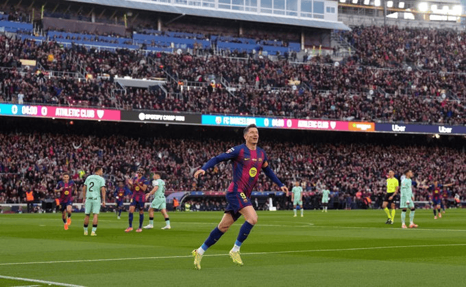 虎扑11月22日讯西甲第13轮,巴萨4-0大胜毕尔巴鄂竞技,莱万为球队首开纪录,打入回归诺坎普首球。