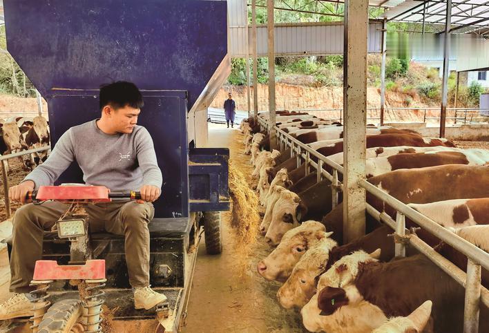 “哞哞……”叫声起处,一排排整齐的牛舍映入眼帘,体格健壮的牛儿正悠闲啃食草料。不远处,粪便生态处理区有序运转。“牛粪尿先干湿分离,渣子发酵晒干,卖给种植户当肥料;液体经发酵池曝氧净化,流入池塘养鱼,池塘水再浇灌周边牧草,真正实现‘零排放’。”工作人员告诉记者。