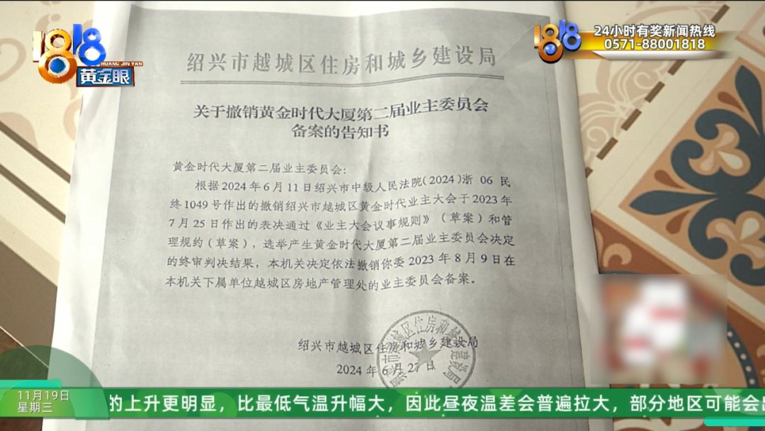 金女士:2023年年底有个不合法的业委会产生,然后选进来了一个不合法的物业叫越祺物业。
