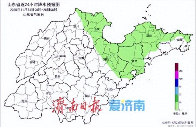 11月22日,进入冬天的第二个节气——小雪。小雪节气充满了人们对雪的期盼,那么,山东省哪些地方会在此时迎来降雪呢?从最新的预报来看,预计,22—23日山东全省天气晴转多云;24—25日,受较强冷空气影响,山东省大部地区气温下降4—8°C,滨州、东营、潍坊和半岛地区有小雨雪。