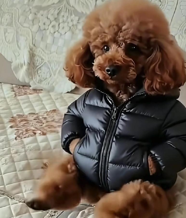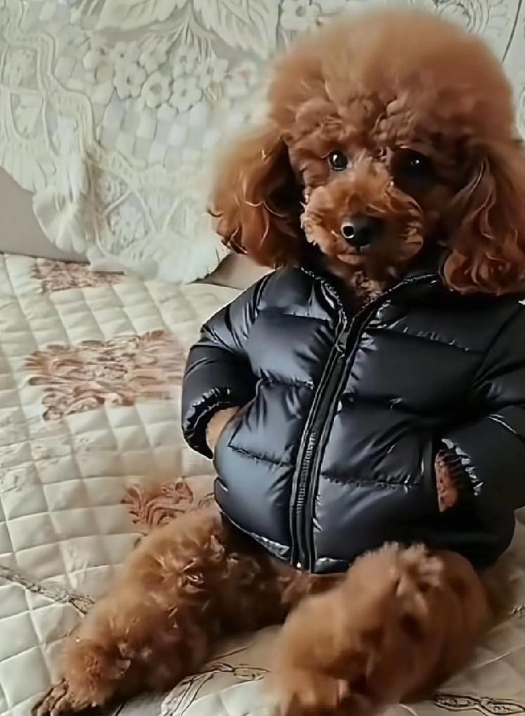 一本正经的人模狗样, 它也穿上了羽绒服,还挺好看的。