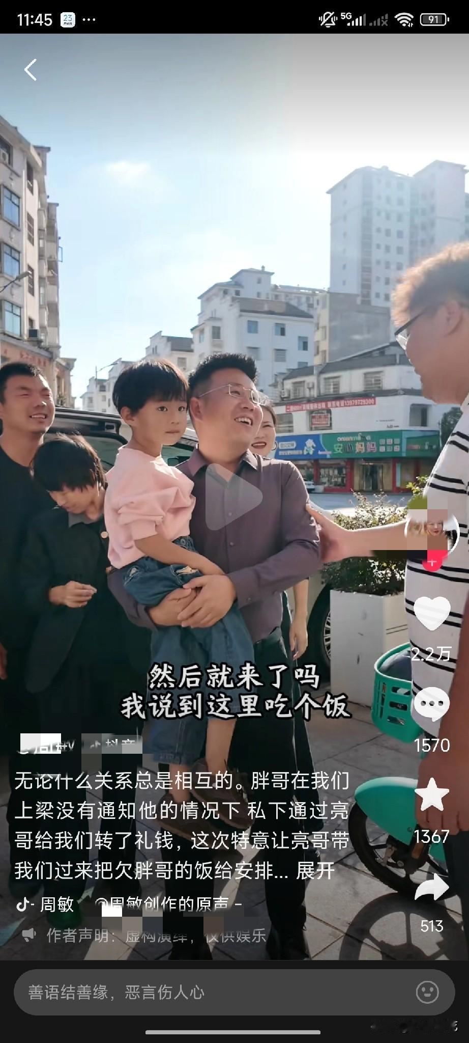 亮哥和梦秋像一家人,不管是长相还是表情,正常人被不正常的人带偏了,看看他俩笑得多像,也不怕梦秋的唾沫星子臭到,真的佩服流量变现的魅力。 左边一个周敏,右边一个亮哥,两个正常人,也是两个马扁子,明明去江西带货脐橙,还非说去了人情请吃饭。 吃饭就吃饭呗,亮哥公开露面时总把别人的老婆梦秋拉在自己跟前,又是夹菜,上次新疆之行还喂饭,既然你真这么关心她,领回你家天天洗刷伺候呗,别恶心网民,只是镜头前一分钟,带回家伺候,我们就服你。 宁宁一家三口就是这俩正常人流量的筹码和道具,挨骂的事他们一家来,做好人的事人家俩人来。 残疾人原本值得同情,关键是残疾人的生活依然如初,正常人的腰包鼓了,人心也变得贪了,穿得也越来越不本分了。