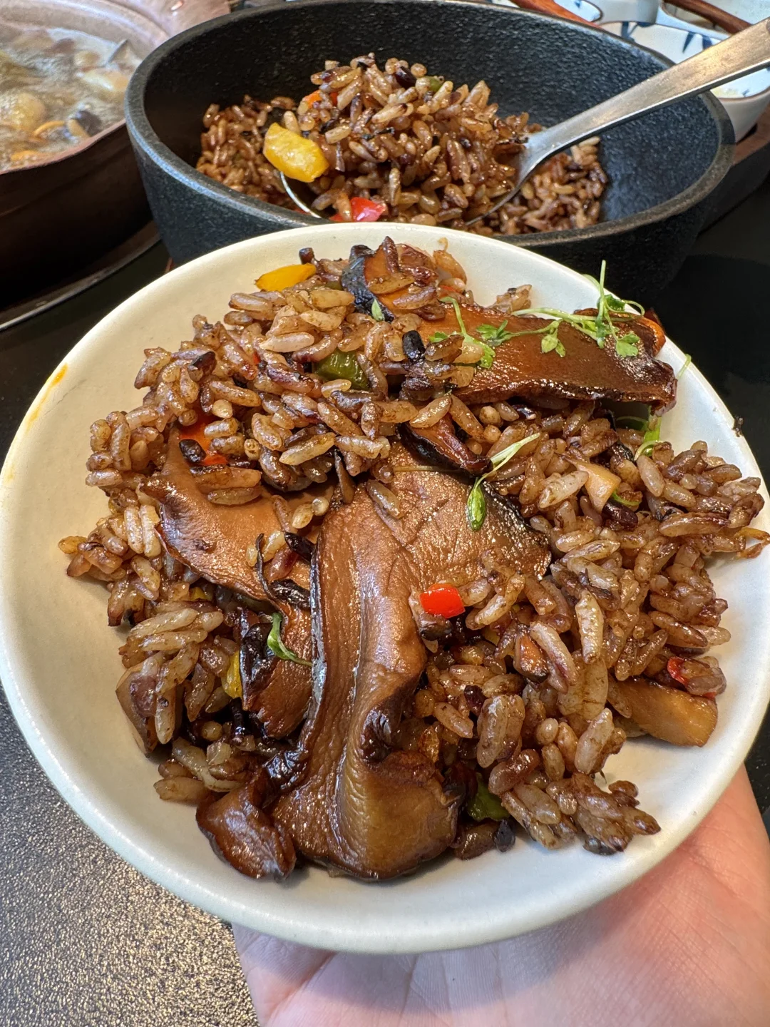 拉着搭子连吃好几天!!! 野生菌配着鸡肉汤锅!!一口冲上头的鲜味!!念念不忘啊啊啊~空口喝都连炫好几碗!! 乐山手工糍粑、牛肝菌炒饭、钵钵鸡都嘎嘎好吃!! 油柑粉芭乐、黄皮山野酸木瓜…酸甜清爽又解腻~随随便便满意离!!