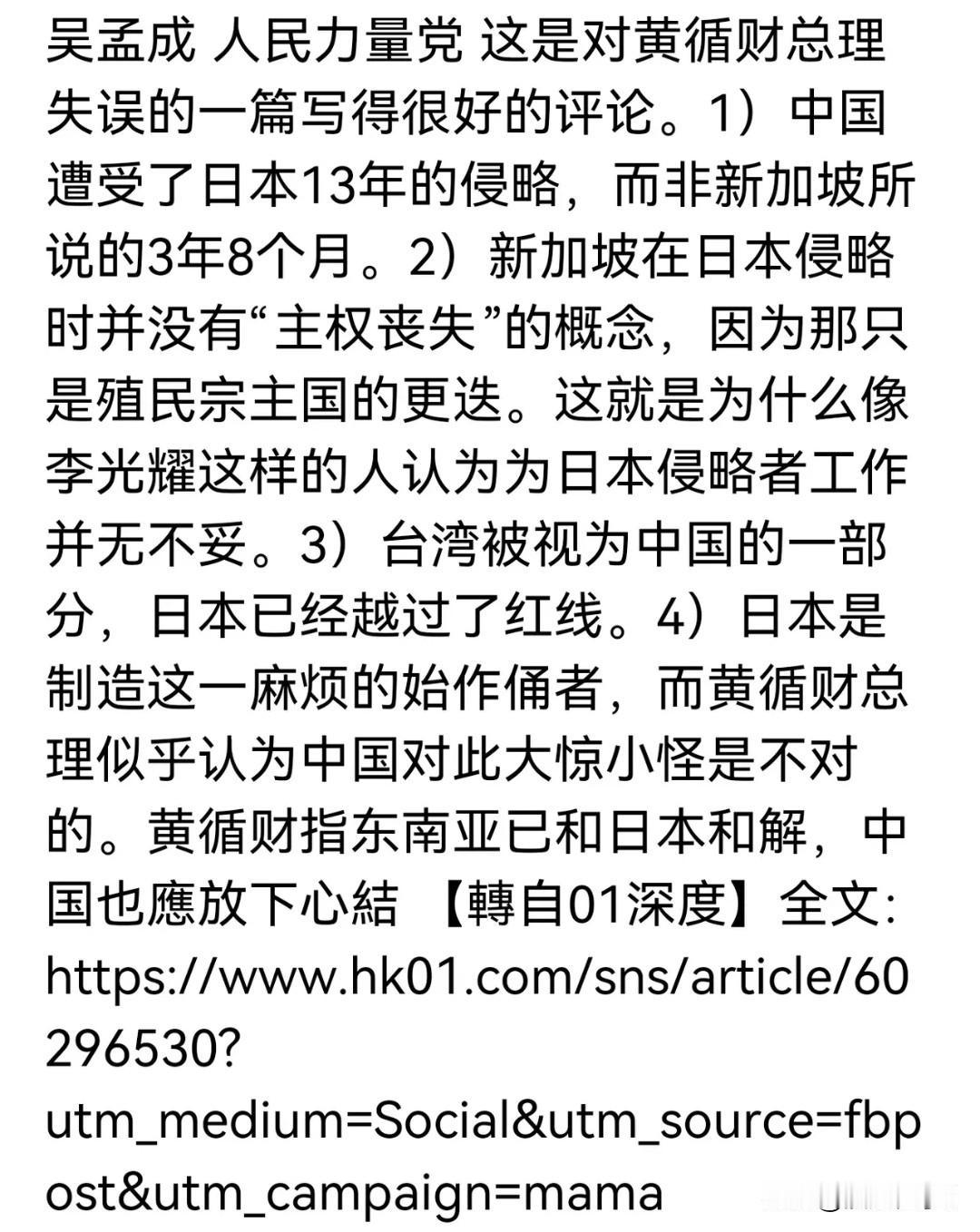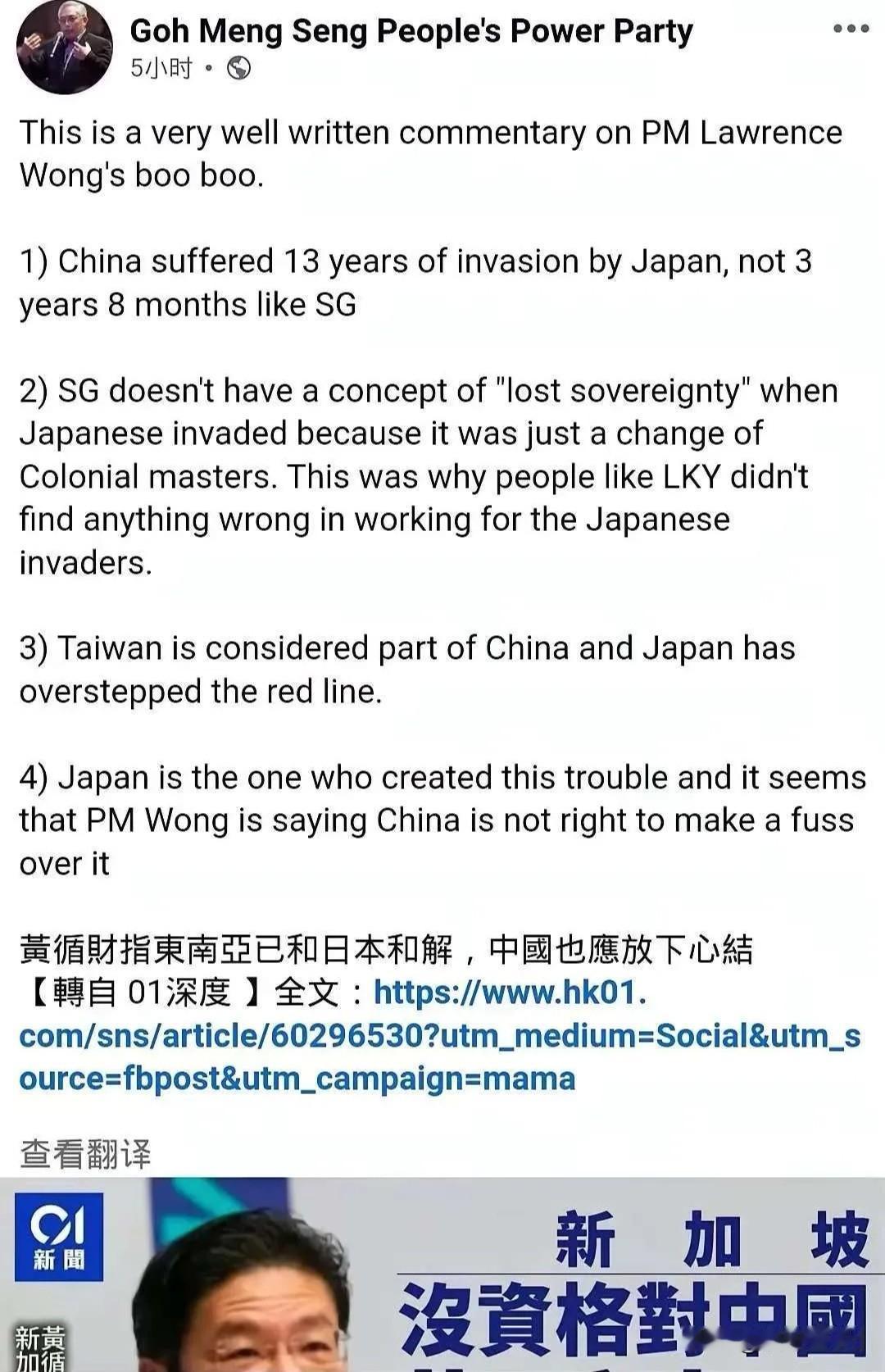 新加坡总理黄循财喊话中国原谅日本遭本国人民力量党吴孟成狠批,11月19日黄循财在彭博创新经济论坛谈及中日因高市早苗涉台言论引发的紧张关系,称双方该放下历史着眼未来,劝中国原谅日本。吴孟成直击要害表示新加坡没有主权丧失概念,当年被日本侵略不过是换个殖民宗主国,暗指其发言脱离实际。新加坡国土仅中国普通县城大小,网上被称坡县,这般小国却敢咋呼着指导中国大国处事,纯属没数儿,小国硬蹭大国事务想刷存在感,如同小麻雀凑老鹰跟前指手画脚,根本站不住脚,后续恐遭更多人吐槽。新加坡这般冒头干预他国事务合适吗?