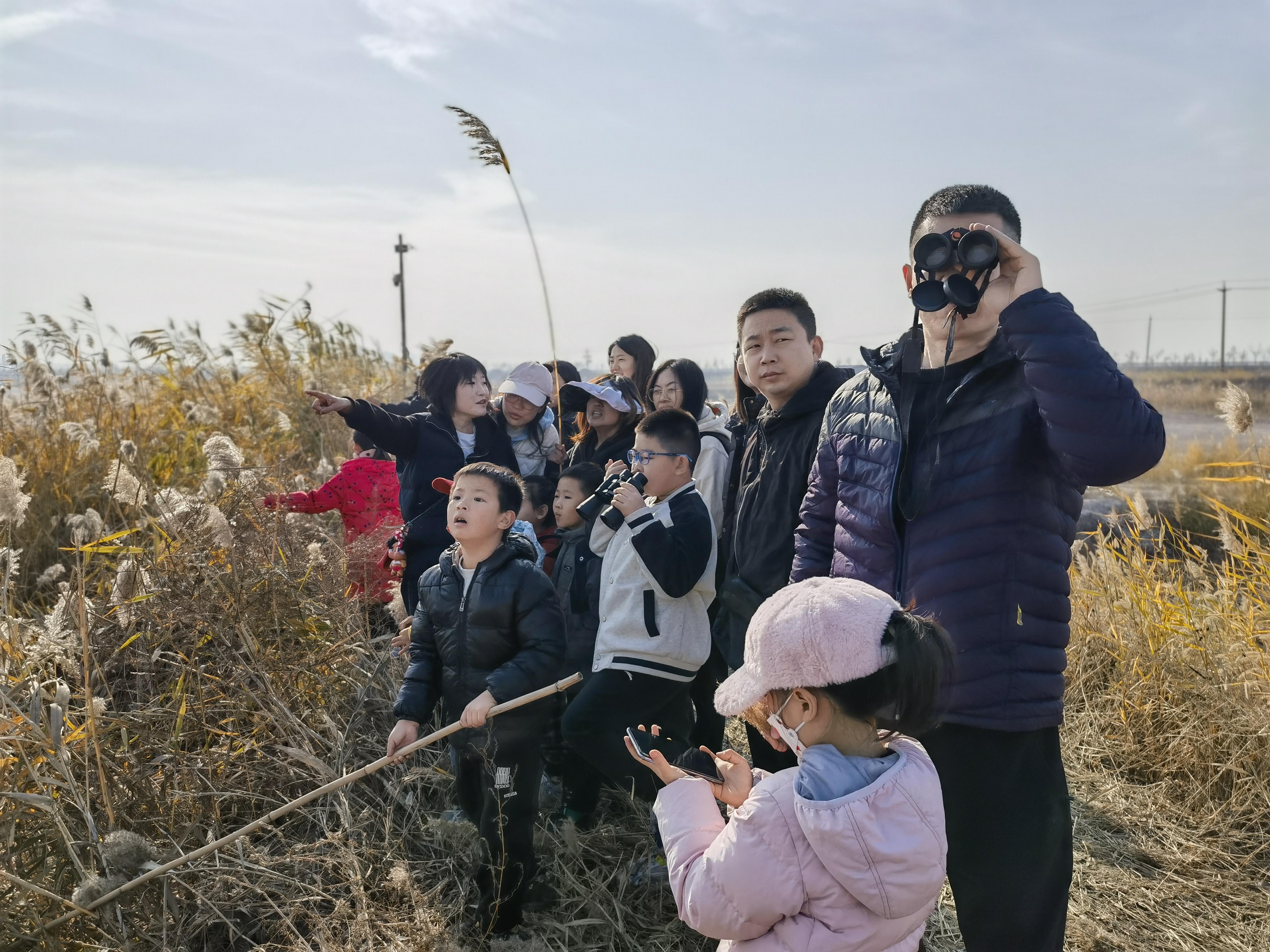 津滨网讯(记者尹冰晶)11月22日,在北塘“爱心鹳湖”畔的生态观鸟棚内,一场以“观鸟识鹳+净滩护河”为主题的亲子志愿活动温情启幕。来自天津经开区的二十余名职工家庭齐聚于此,手持望远镜,近距离观察国家一级保护动物——东方白鹳的优雅身影。本次活动由天津经开区环境保护协会与泰达职工读书会共同发起,旨在引导亲子家庭从观鸟中感悟生命之美,以身体力行守护共同的家园,在湖光鸟语之间播撒爱护自然的种子。