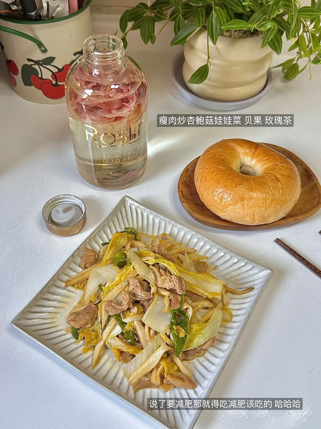 🥣午餐:炒菜➕贝果➕玫瑰茶