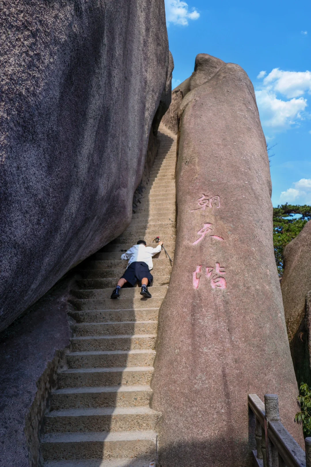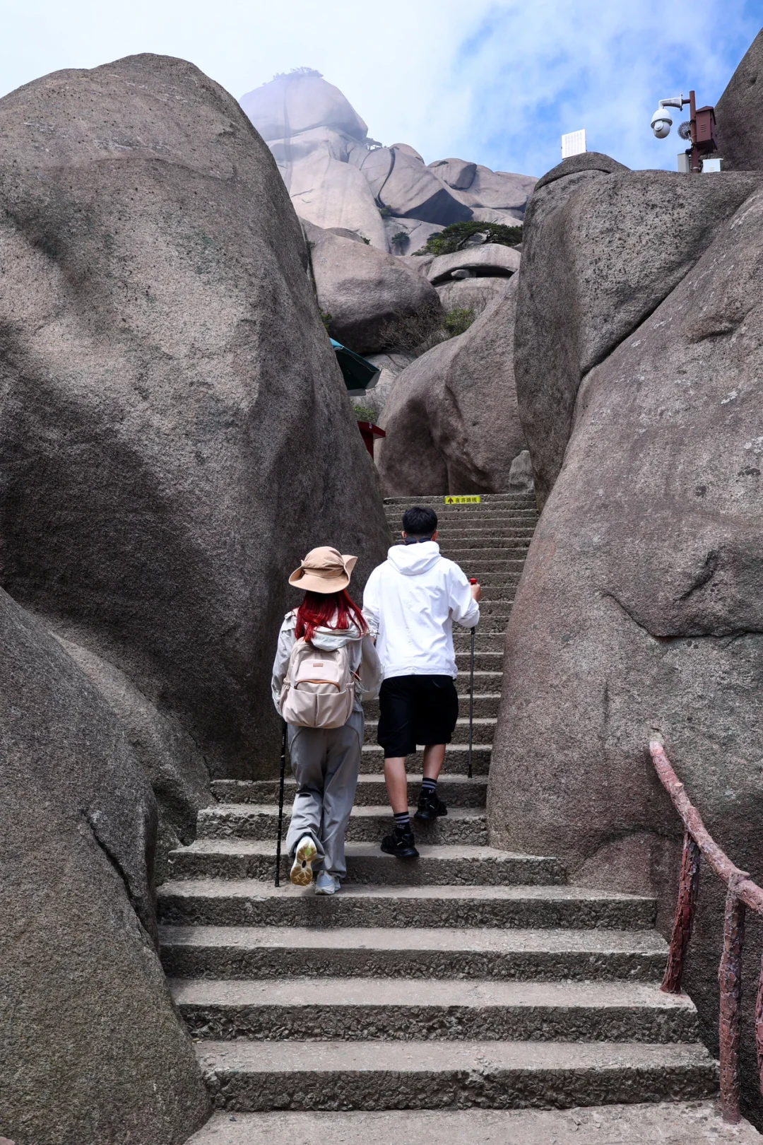 登上山顶会经过几乎垂直的云梯☁️