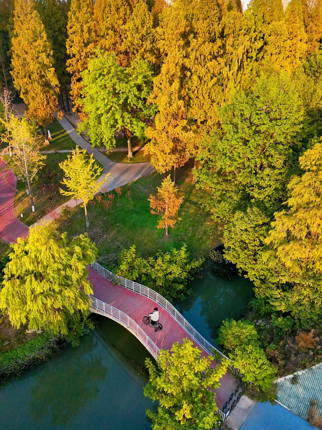 不用去东湖绿道人挤人了‼️ 这里人少,风景一绝🌲骑行、遛🐶,遛娃都很适合 9座天桥串联,途中还有银杏树、游乐场、各种惊喜 📍导航:武昌生态文化长廊(停车场位置很多) ————————🚴‍♀️ 🚧整条绿道全长17公里 会经过青山公园、和平公园、二七长江大桥、四美塘文化公园、长江大桥、🌛月亮湾、沙湖公园、长江大桥‼️ 🚴‍♀️亲子骑行可以选择短路线👇 停在这个地方武昌文化生态长廊➡️紫藤花桥➡️火车文化主题乐园➡️青山公园➡️水波桥 - 小朋友自带自行车,大人可以骑共享单车 距离起点最近的青山公园秋天的氛围感很足 银杏、杉树都黄‼️⚠️沿途有厕所和便利店! -