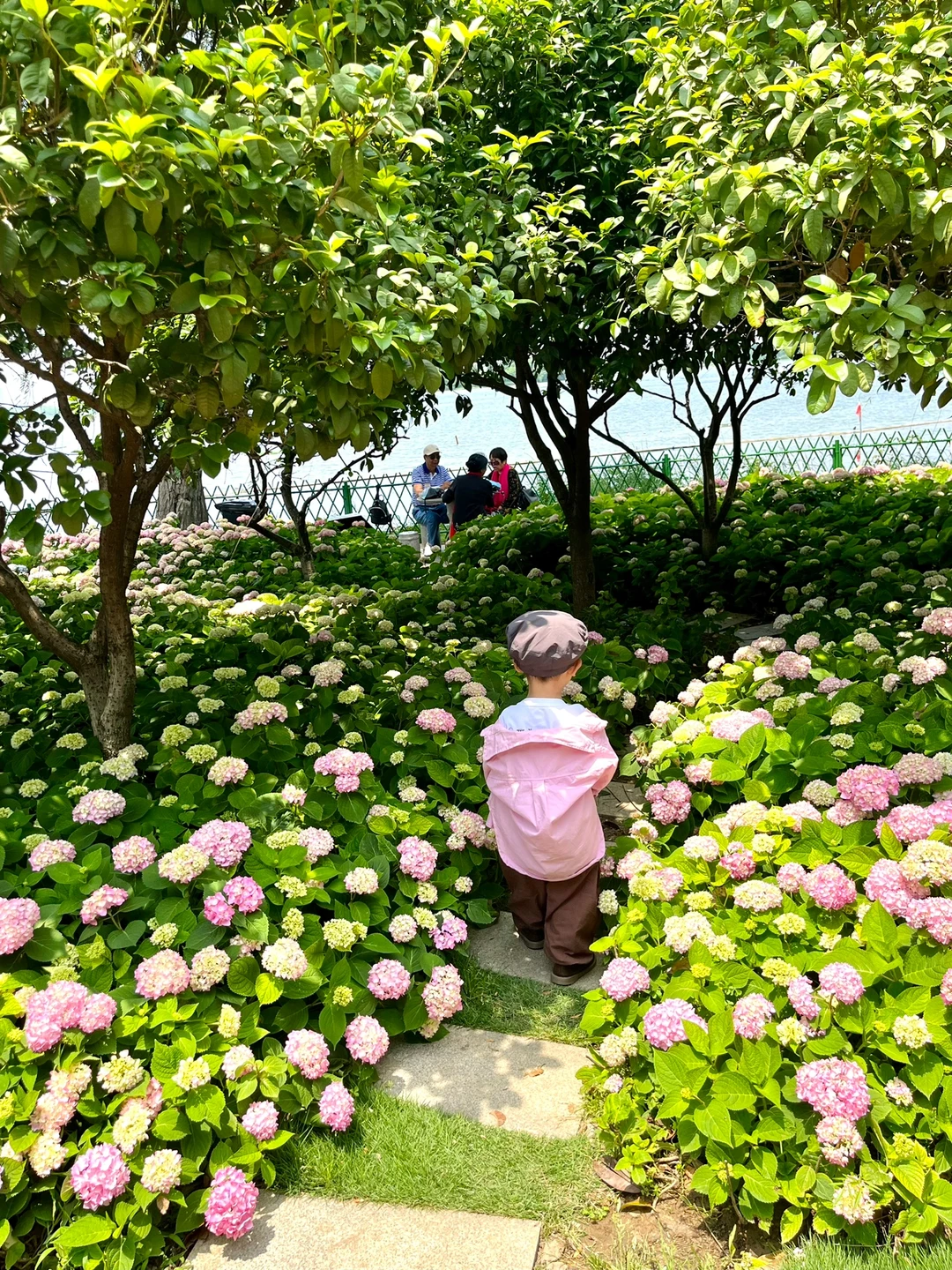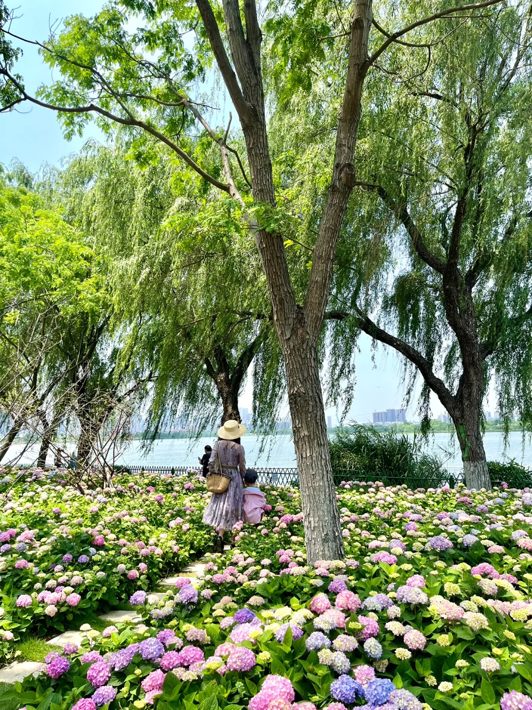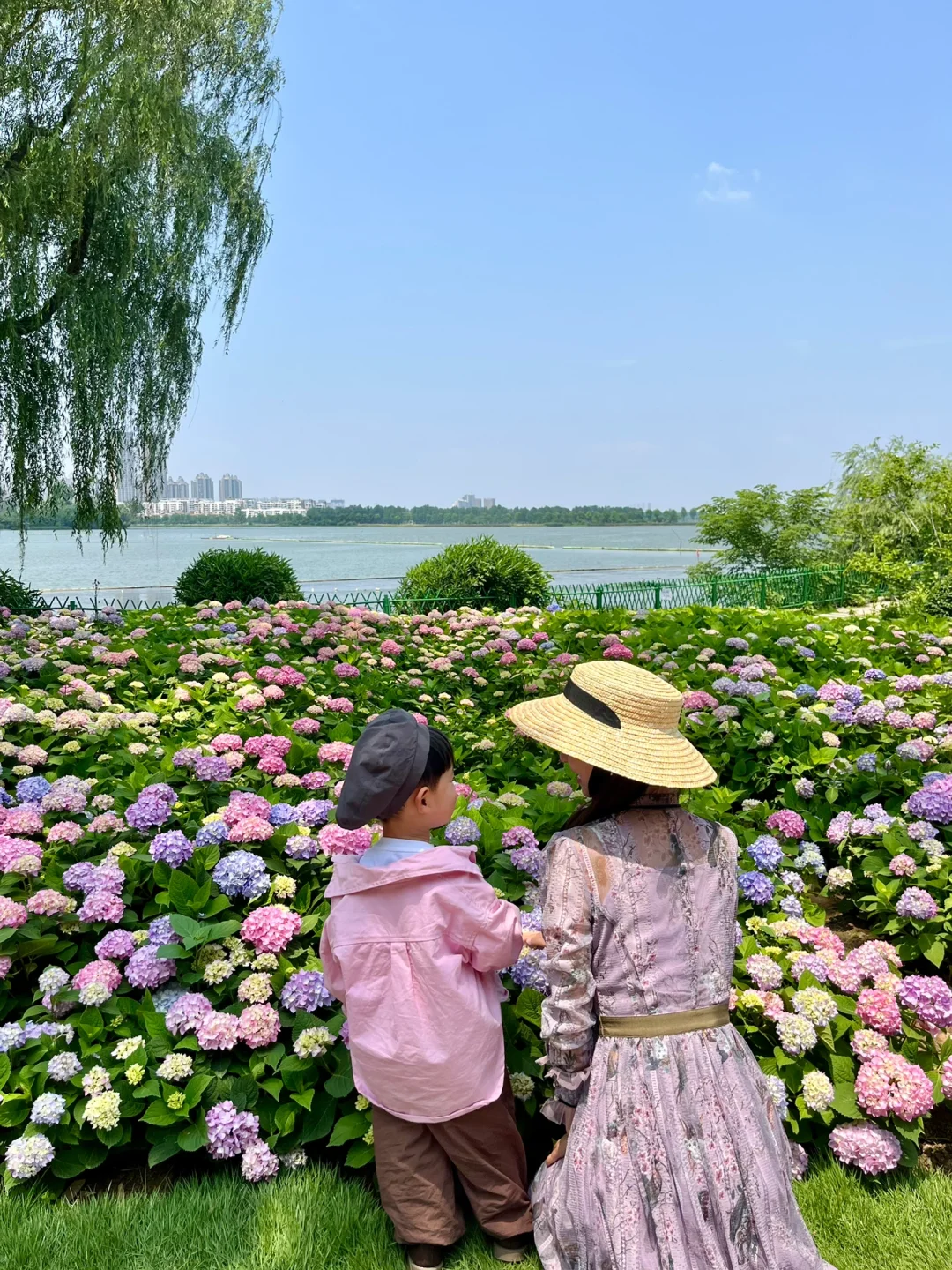 被低估了的绝美公园🌸 导航📍金银湖湿地公园(不好停车!建议打车) 从大门进去后往右手边走! 然后就会看到一片绣球花,但那不是最大片的 最大片在这片绣球的左边 沿着路一直走就到啦 (实在找不到可以拿照片问路人) 公园是狗狗🐶友好公园⛲️ -