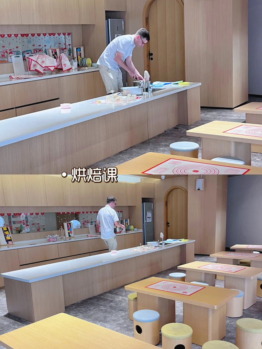 2️⃣当时碰到有班级在上游泳课,男生女生分开上课的,游泳池有7个小朋友,就有三个老师在里面,这点看着满放心的,上到2楼看到外教还有主班老师在准备烘培课的材料(图8),感觉很有趣,我都跃跃欲试了😃😃😃