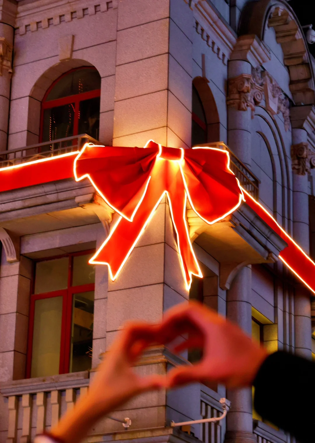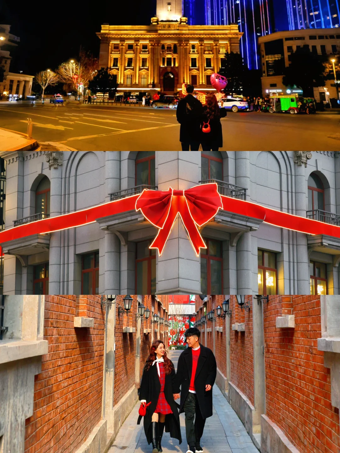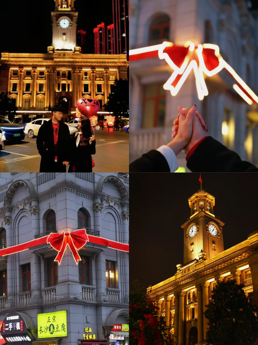 2️⃣江汉路:江汉路地铁站🚇b出口出来,墙上有一个大蝴蝶结🎀,很出片,晚上还会亮灯,氛围感十足