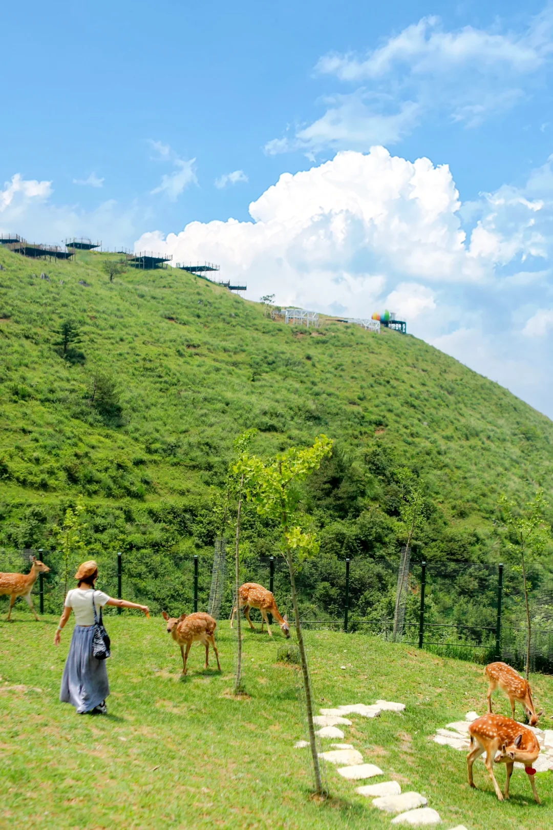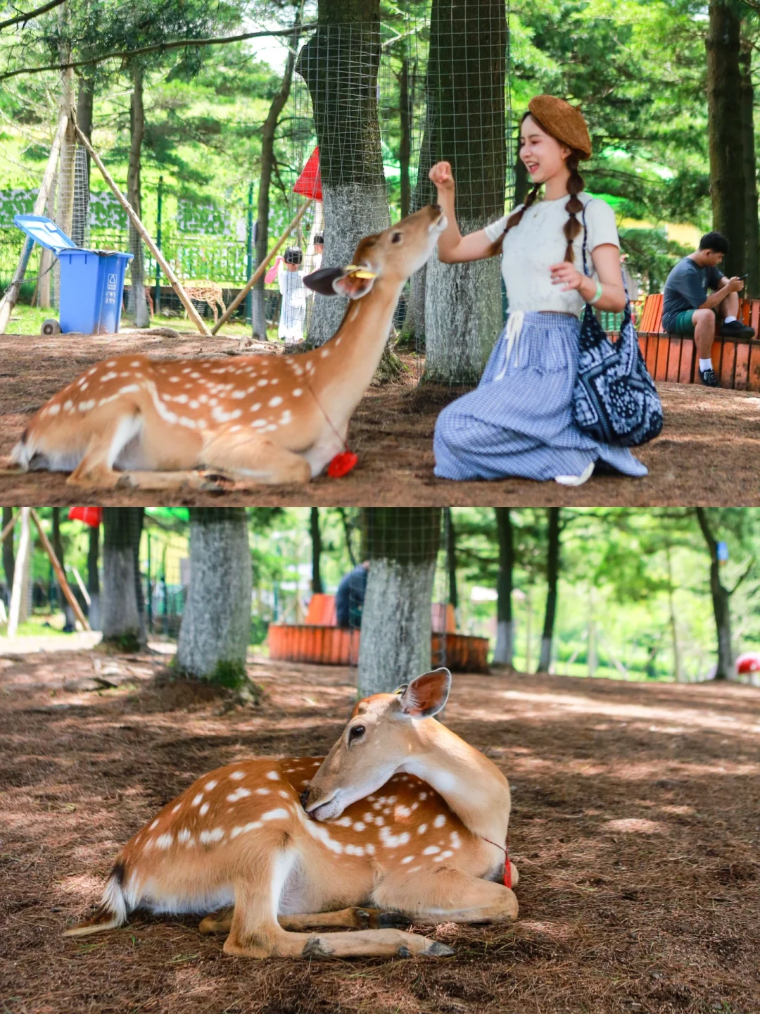 ✔️🦌鹿园:在山顶和小鹿互动,风景一绝,这里的梅花鹿一点也不怕人,很亲人,拿出胡萝卜,一群都来了