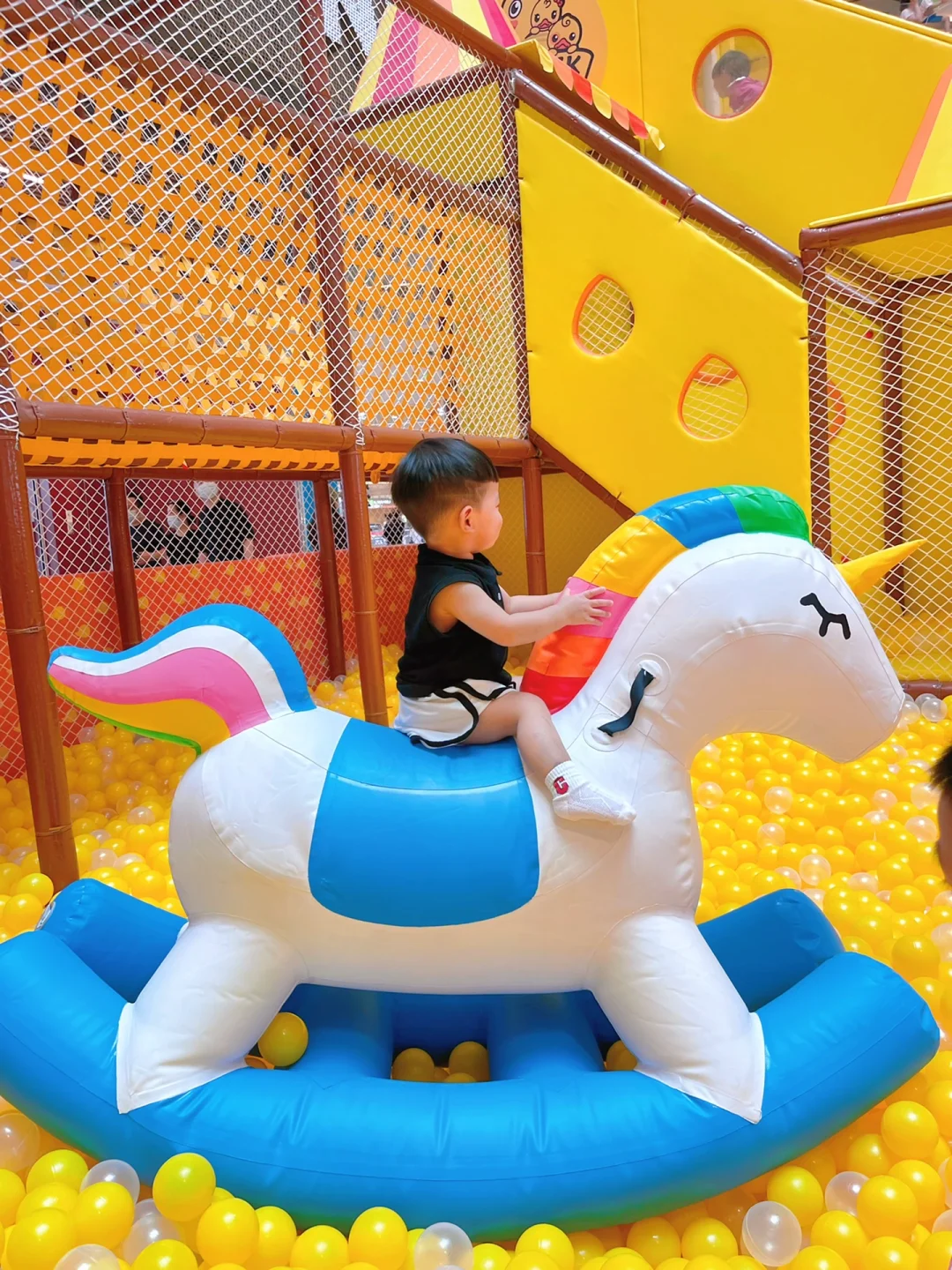 ⚠️注意:门口会发一次性袜子,免费的,觉得很适合小宝宝的,小肥羊玩的很开心,因为是在中庭,不会有游乐场闷人的感觉哦,除了人多,其余还不错,就是小型游乐场