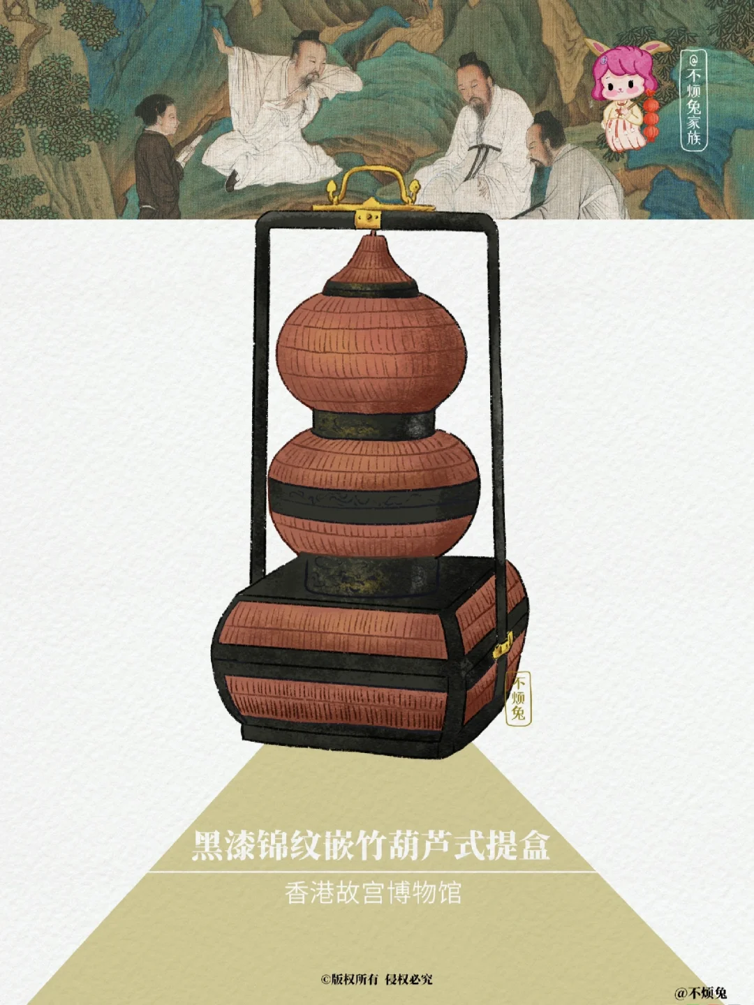 2️⃣黑漆描金锦纹嵌竹葫芦式提盒
