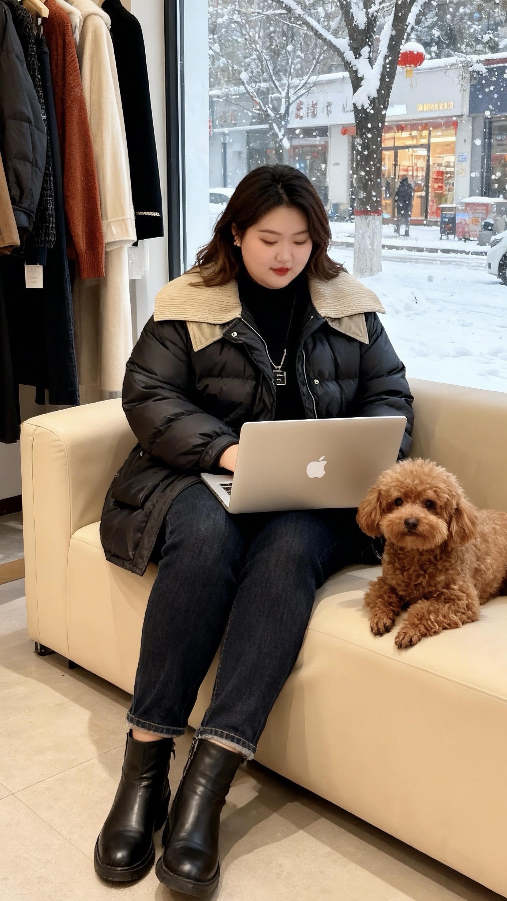 奶白色毛绒外套配白裤+卡其过膝靴,贵气又利落,冬日氛围感直接拉满~