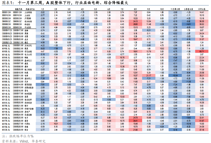 近期市场调整,我们认为这背后是多种因素共振的结果:1)过去一段时间全球投资者对AI强资本开支的持续性质疑渐起,而英伟达超预期的财报发布后,其高开低走的股价表现加剧了投资者担忧及市场的去杠杆化;2)这一现象背后一部分来源于年末投资者保收益情绪较浓重,另一部分则源于美元流动性预期边际收紧对全球风险资产的扰动,此前投资者对12月美联储降息预期一度回落至约30%,此外A股及港股上周供给侧也有大额解禁压力;3)地缘问题扰动也有所加剧,加速了市场的riskoff。从上周五市场表现看,股/债/黄金多类资产均有下跌,反映市场流动性担忧加剧,但历史数据来看因流动性冲击造成的回调短期反弹的概率也较高。