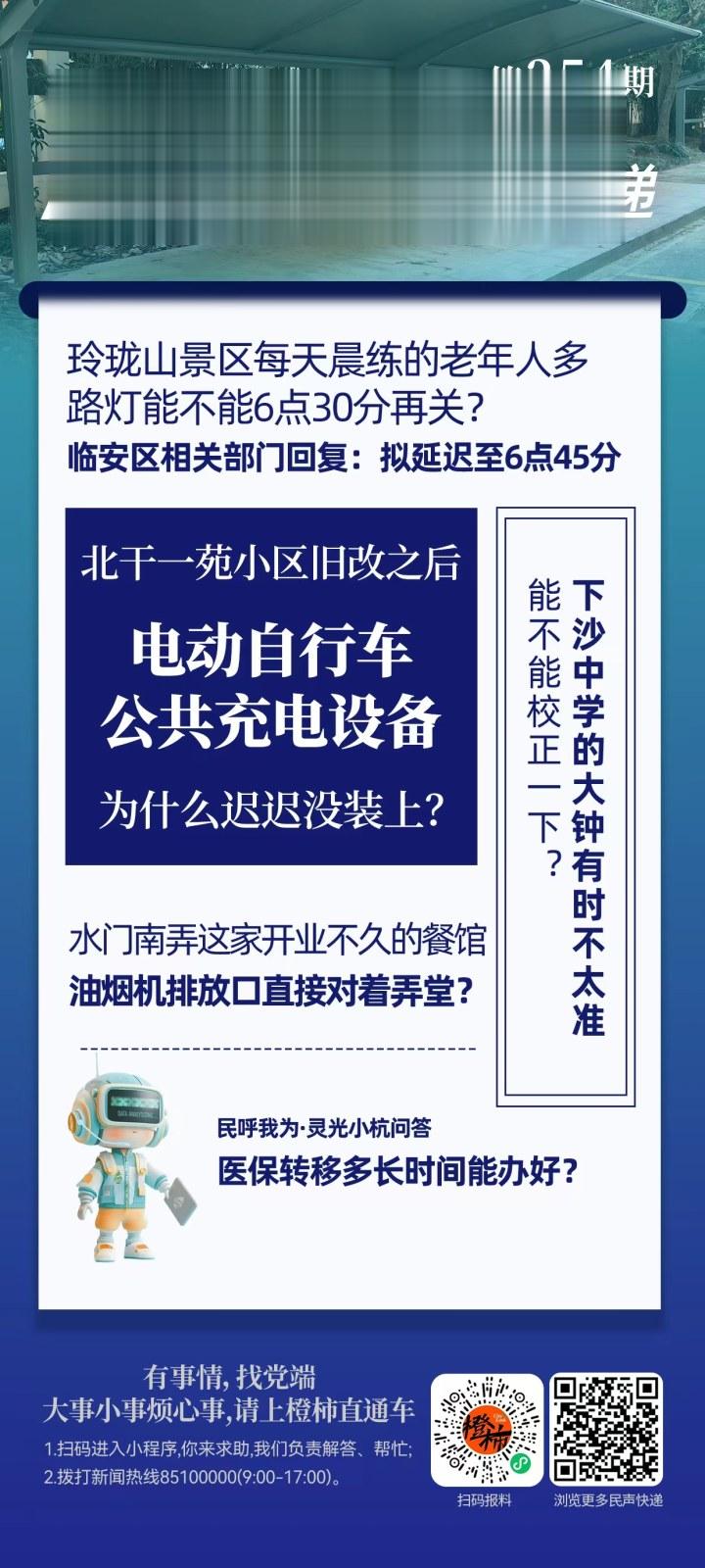 收到建议后,我局立即与临安城投集团(景区路灯养护责任单位)沟通对接,详细反馈了市民诉求及实际出行需求。经协同研判,为适配冬季昼夜节律特点,切实解决老年人晨练时段照明需求,临安城投集团已明确整改方案,现正推进相关调整工作——玲珑山景区路段路灯的早上关闭时间延迟至6点45分(较市民原建议时间延长15分钟,进一步预留晨间出行缓冲时段)。