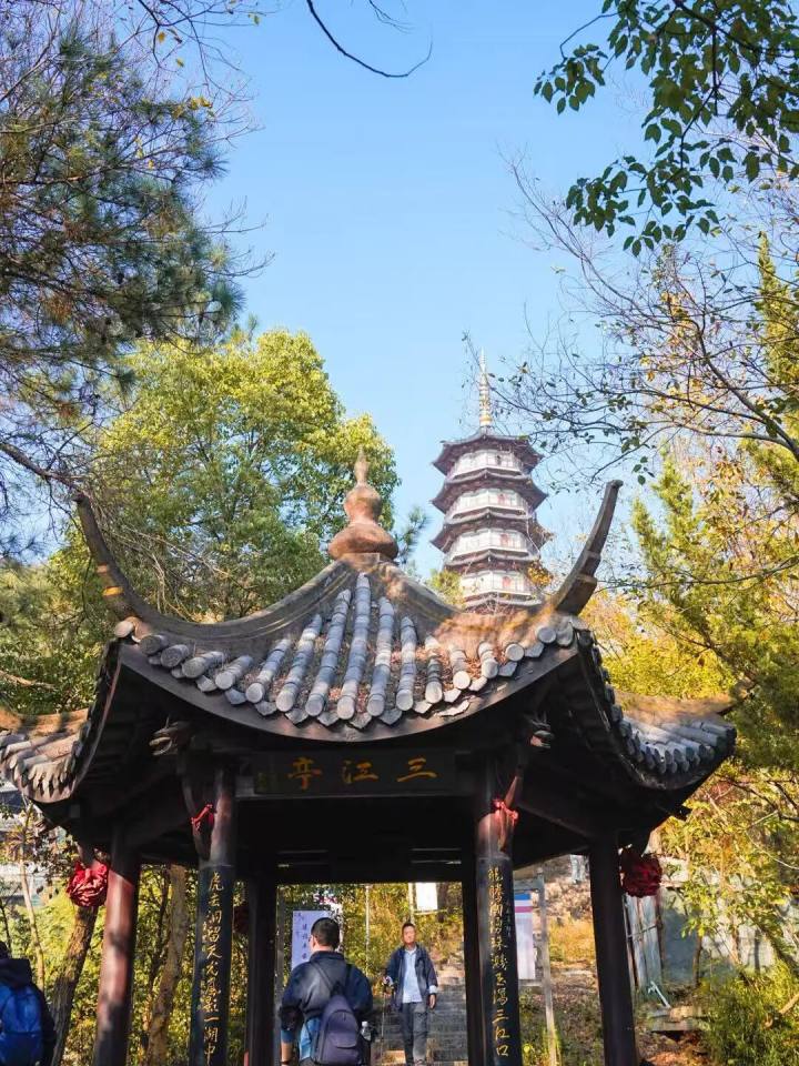 过了山门觉海亭,很快便到了半山处的三江亭。