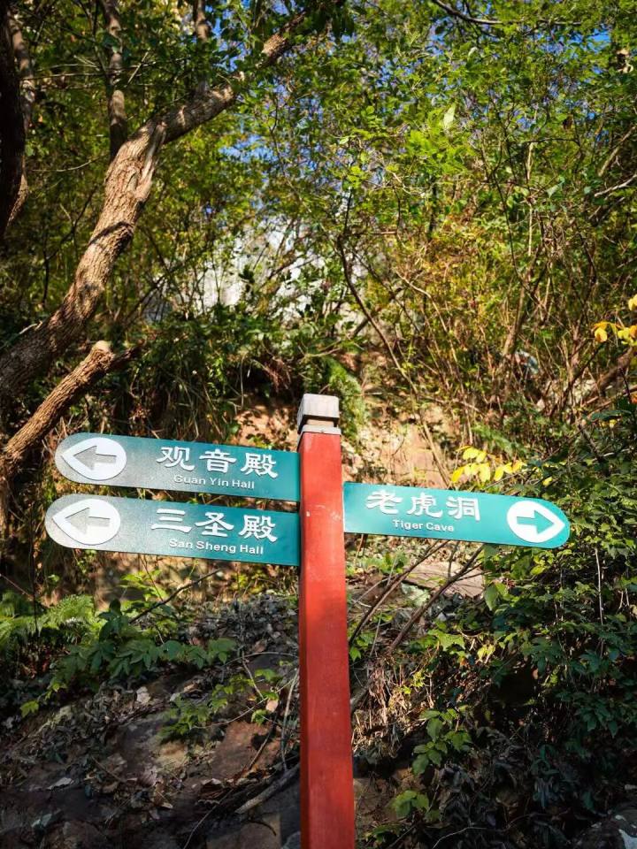 但如果是周末,车位比较紧张,建议导航至山脚的老虎洞游客中心地上停车场,车位充足,再从容步行上山。