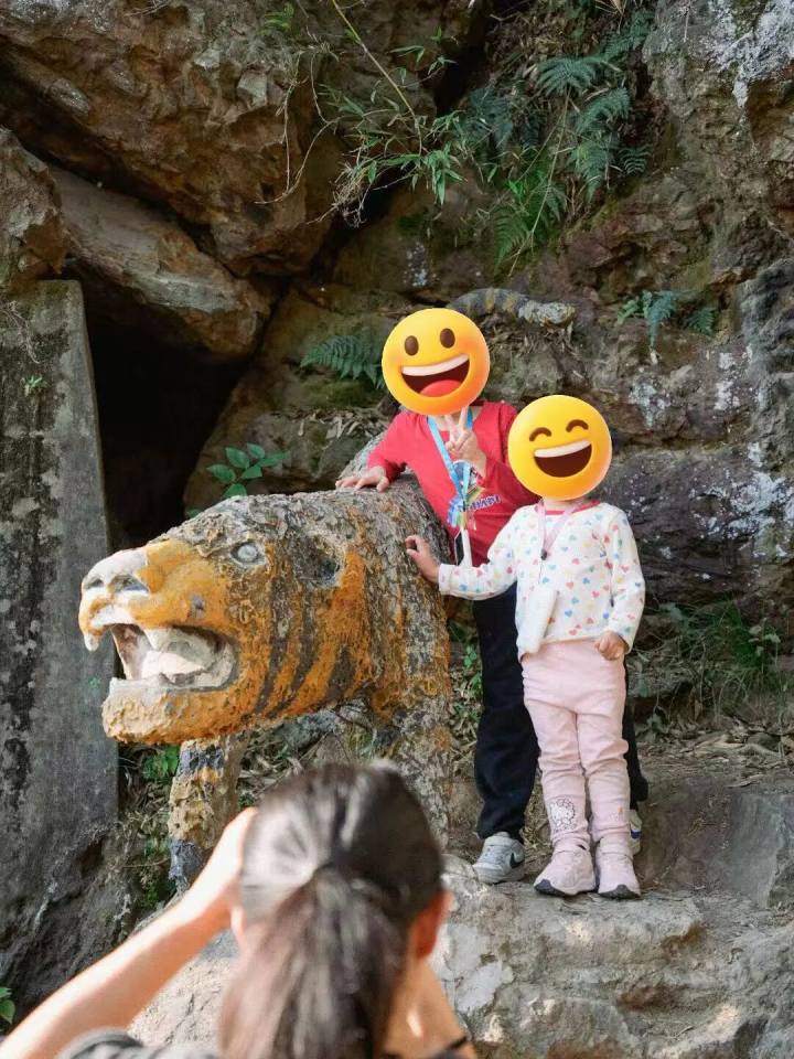 洞口有一个老虎塑像,孩子们在旁边拍照,让人不禁回想起自己的童年。
