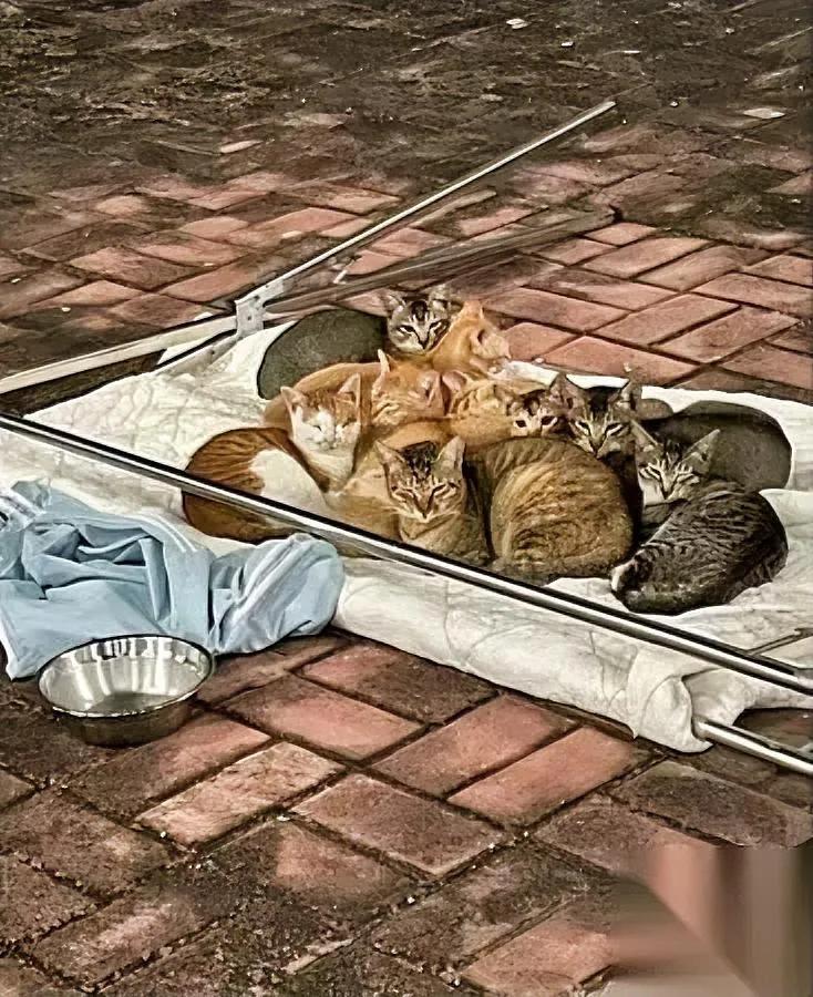 晒被子遇名场面! 被子吹落竟成猫窝? 楼下晾被子时突然发现画风跑偏——原本平铺的被子堆成了毛茸茸的小山丘,十几只流浪猫正把它当"天然暖房",黑的白的橘的挤成一团,尾巴尖还时不时晃两下[偷笑]。路过的邻居想伸手赶,却被它们睁着湿漉漉的眼睛望得心软,最后默默回屋抱来半袋猫粮。 这种意外的温暖碰撞,比冬日暖阳更戳人。流浪动物的生存法则从来残酷,但总有些柔软瞬间,让我们看到人和自然最本真的善意流动。当钢筋水泥里的我们为生活奔波时,这些不期而遇的小生命,何尝不是在提醒我们:再冷的日子,也有值得奔赴的温柔。 如果是你遇到这窝"偷被子"的小家伙,会选择拍照记录还是悄悄添件旧毛衣?评论区聊聊你的"人宠奇遇记"~
