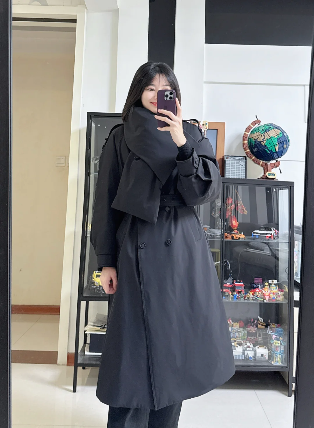 👩穿搭分享:风衣款羽绒服,是我喜欢的硬挺面料,上身很有型,简约大气,冬天户外御寒必备。